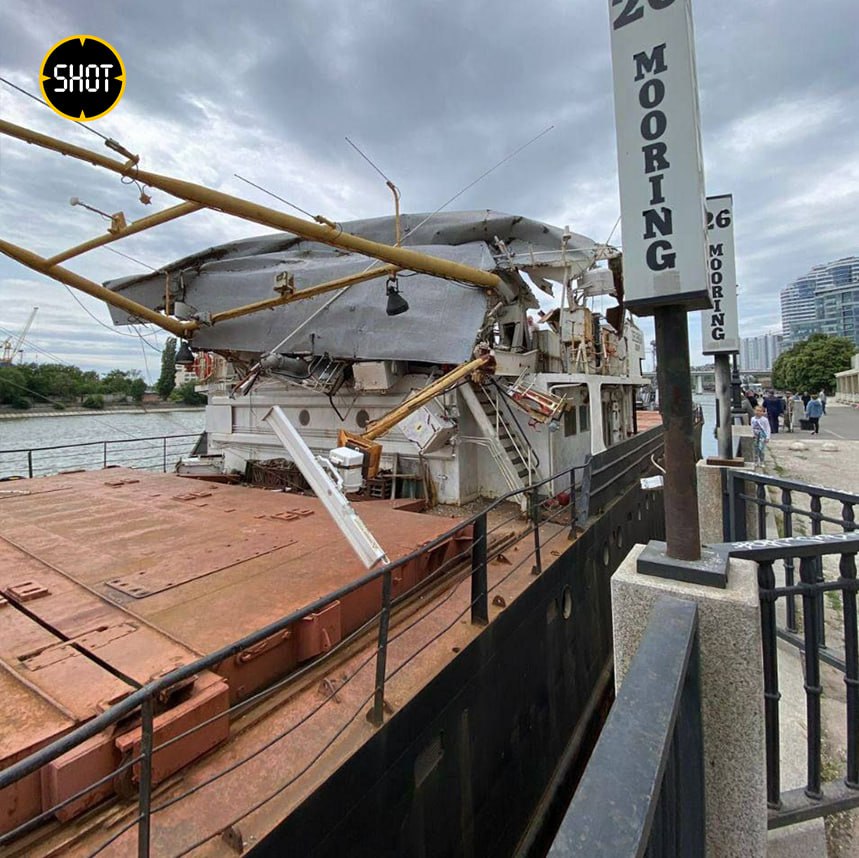 По данным SHOT, сухогруз врезался в участок моста, который не поднимается. Подъёмный участок расположен правее. "Зеленгу" отбуксировали к набережной.