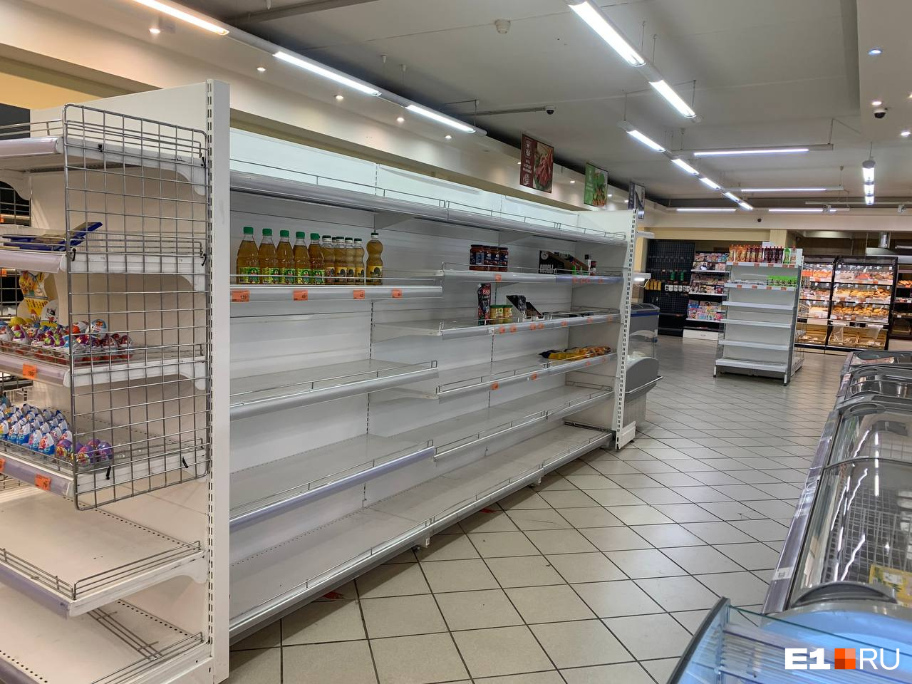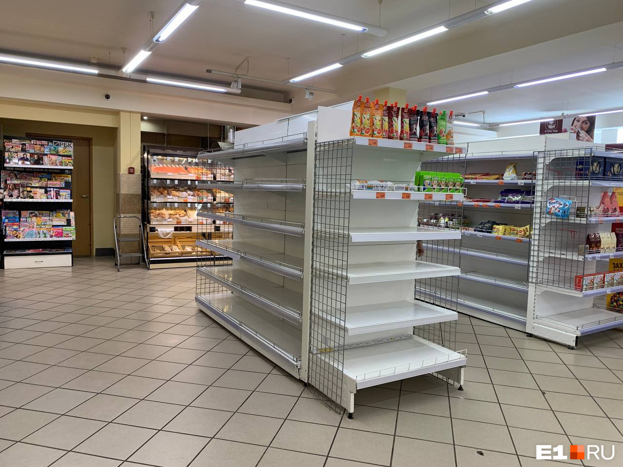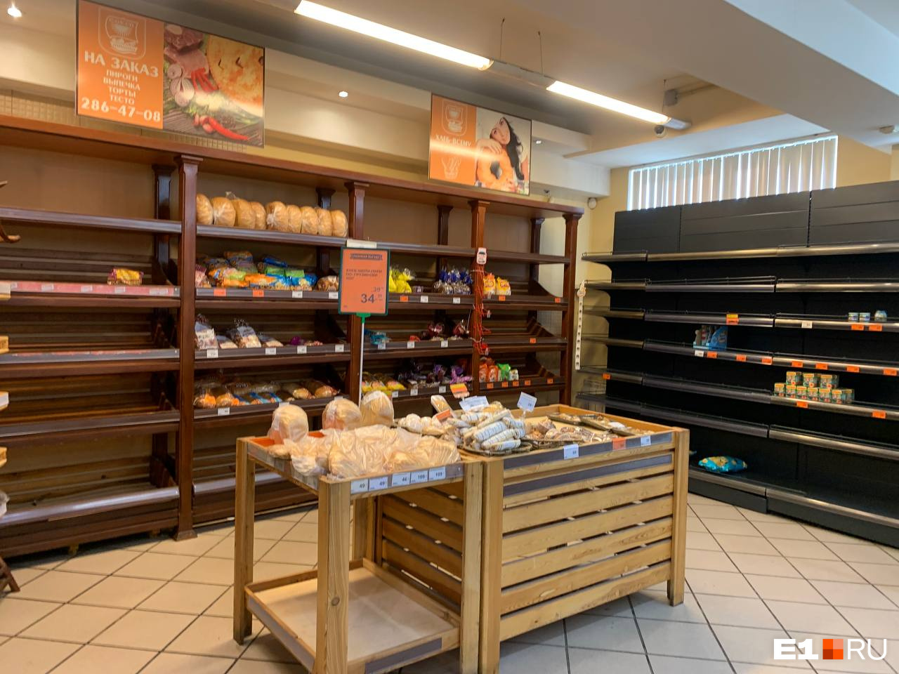 В Екатеринбурге опустели магазины местной сети «Елисей». На полках там остались в основном только продукты собственного производства. Остатки товаров распродают с внушительными скидками. Показываем, как торговые точки выглядят за несколько дней до полного прекращения работы.
