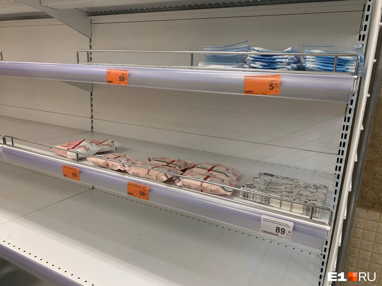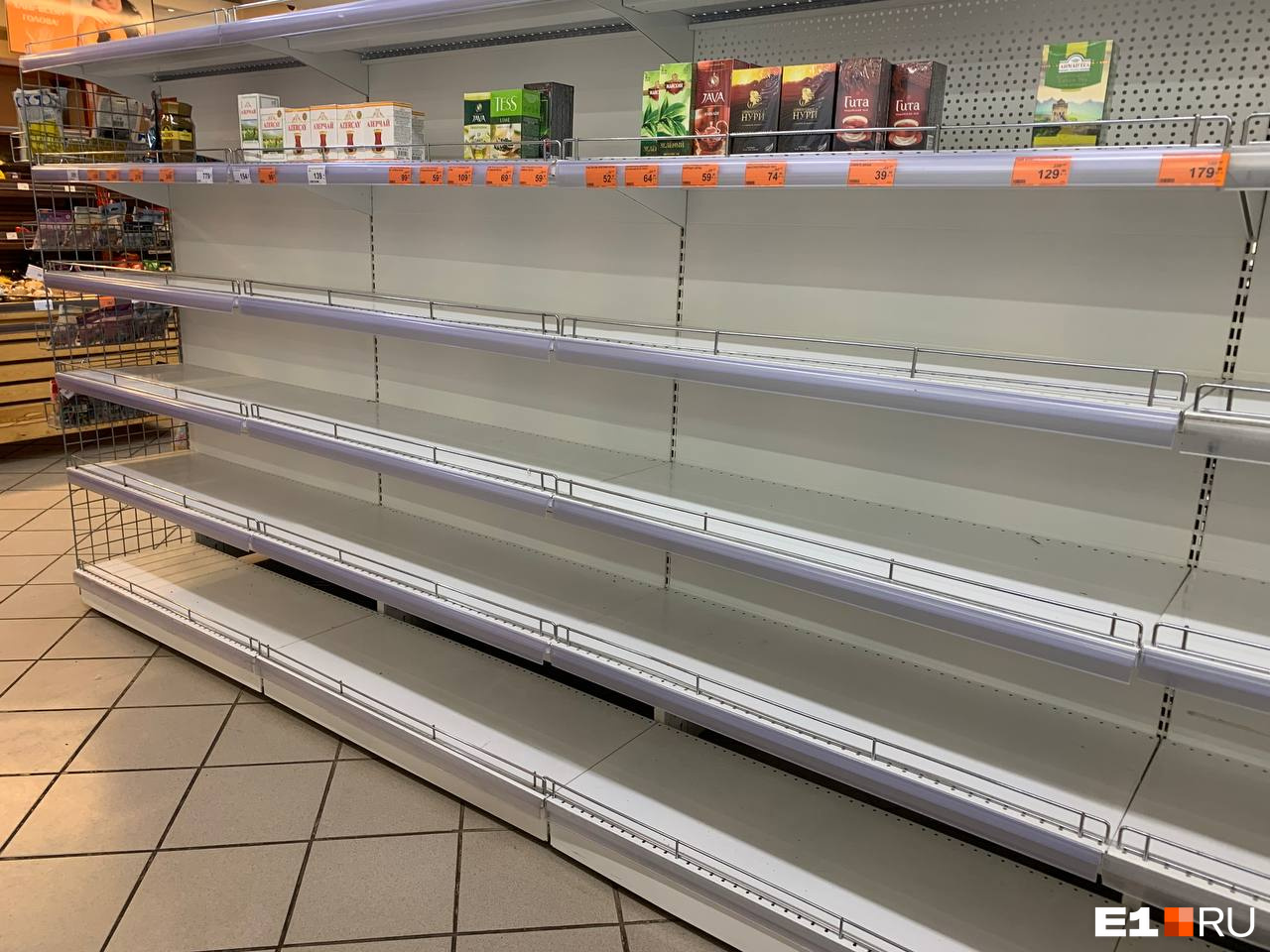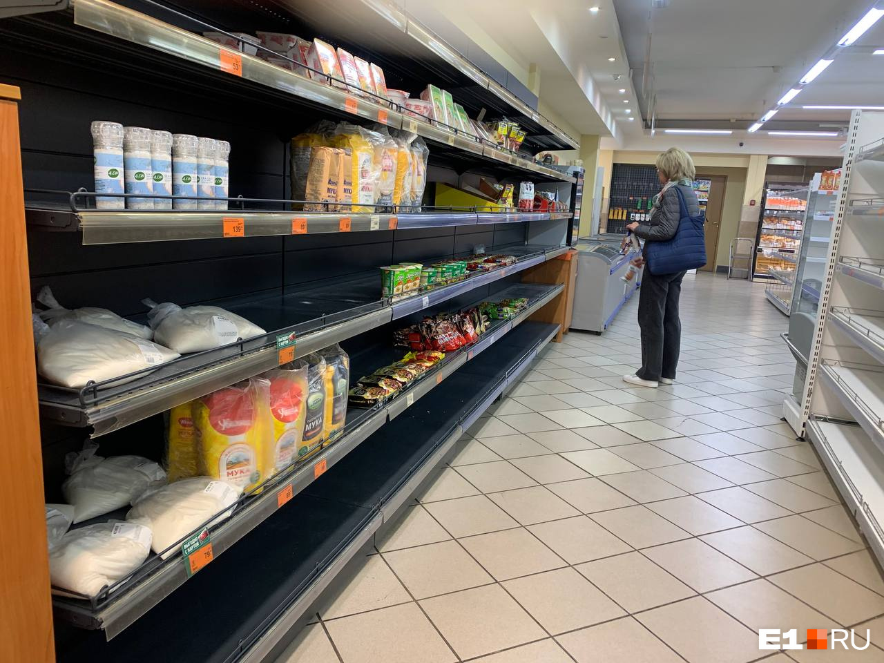 В Екатеринбурге опустели магазины местной сети «Елисей». На полках там остались в основном только продукты собственного производства. Остатки товаров распродают с внушительными скидками. Показываем, как торговые точки выглядят за несколько дней до полного прекращения работы.