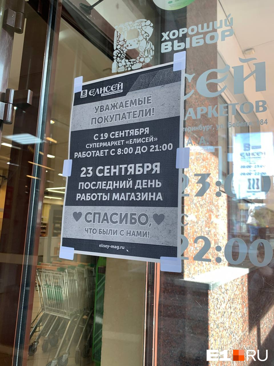 На входе в магазин на улице Шейнкмана висит объявление о том, что последним днем работы станет 23 сентября. «Спасибо, что были с нами», — говорится в нем.