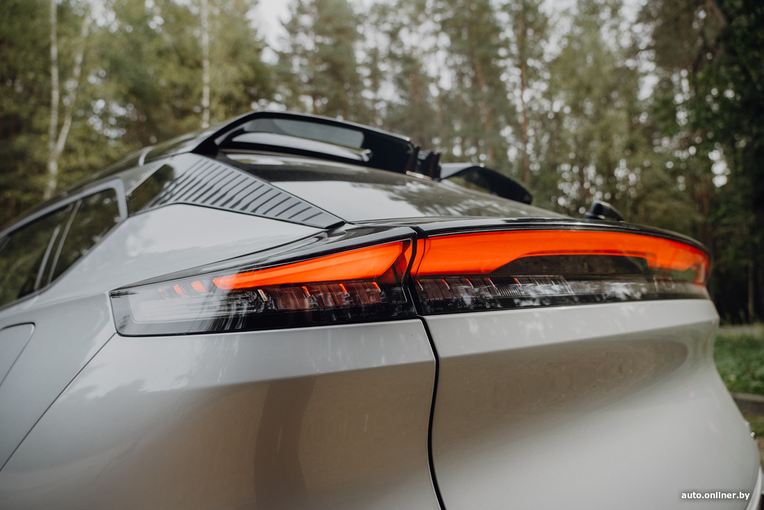 Что еще? Задний спойлер разделен пополам дополнительным стоп-сигналом, но такое стилистическое решение мы уже видели на некоторых китайских машинах. Четыре патрубка в заднем бампере тоже доводится частенько видеть на самых разных массовых моделях. И эти «двухстволки», конечно, бутафорские, как и небольшие окошки позади задних дверей — на самом деле они призваны визуально разгрузить широченные задние стойки.