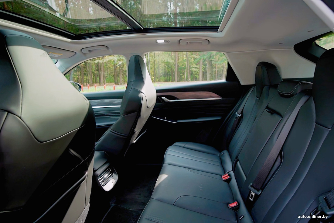 Салон ожидаемо просторный. Во втором ряду места достаточно во всех направлениях. Но вот удобств для задних пассажиров маловато: вместо отдельной зоны климат-контроля лишь воздуховоды, диван лишен обогрева и каких-либо регулировок. Но это едва ли не единственная претензия по части оснащения, ведь так-то укомплектован Mage весьма неплохо.