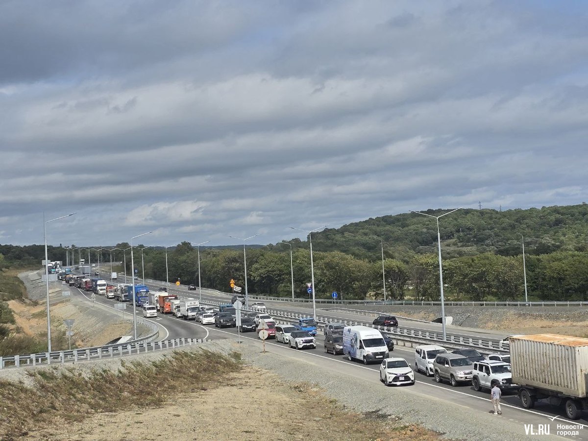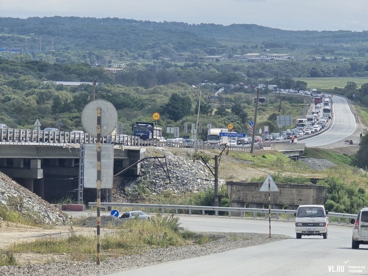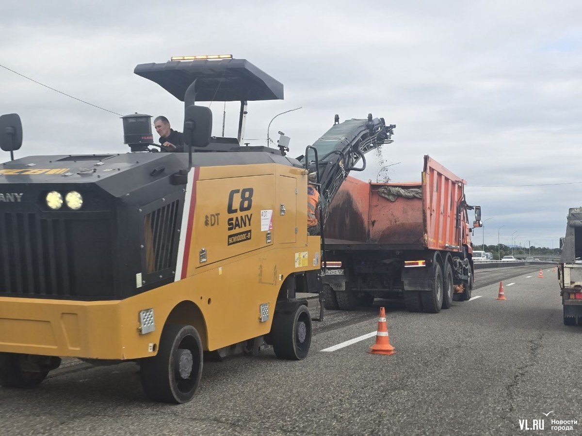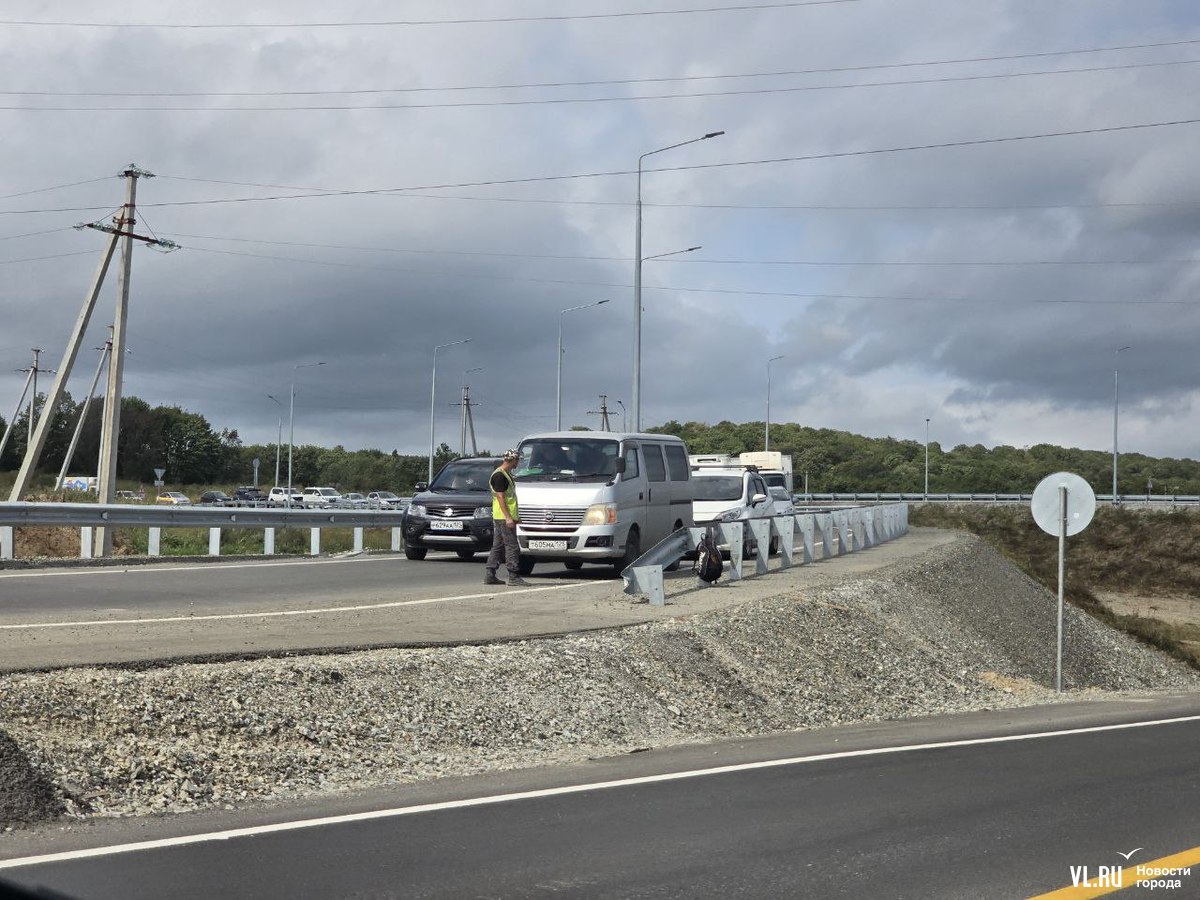 Днём дорожники перекрывали две полосы в районе новой развязки на Раздольное для ремонта. Для проезда осталось две полосы по направлению во Владивосток. На участке ввели реверсивное движение, рабочие периодически останавливают то один, то другой поток.