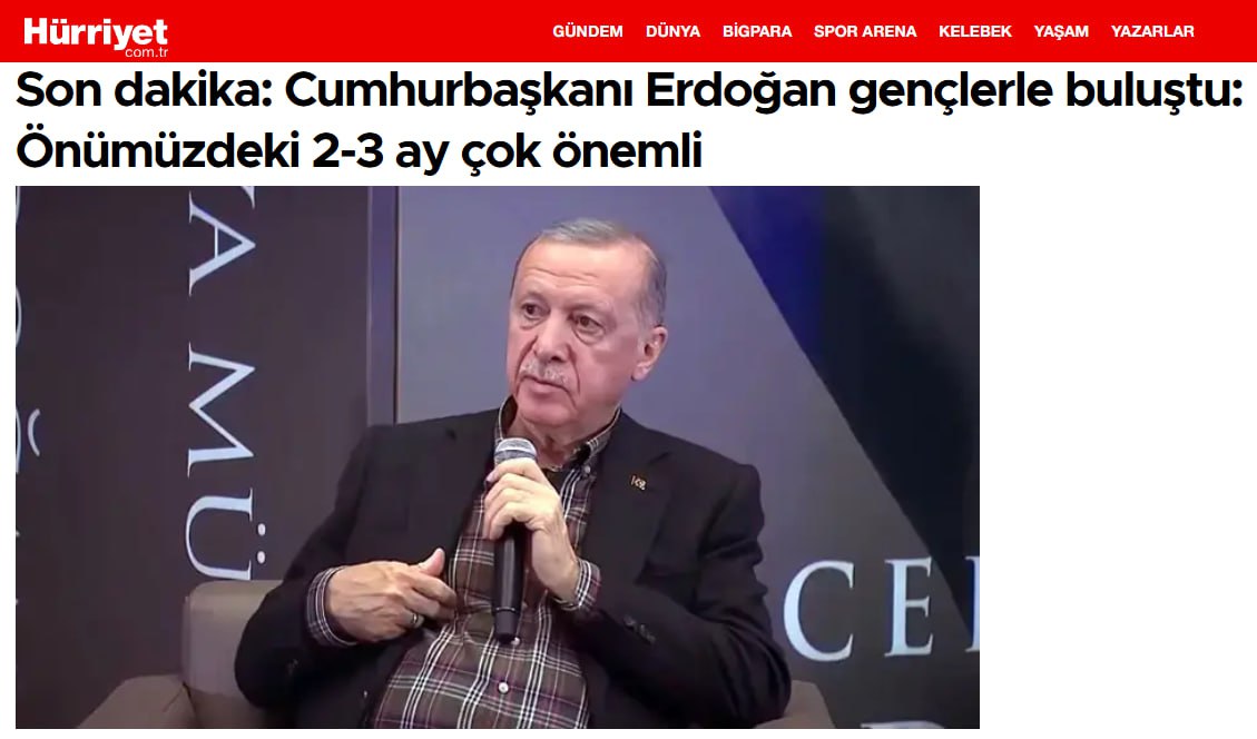 Такое заявление сделал президент Турции Реджеп Эрдоган во время встречи с молодёжью, пишет Hürriyet.