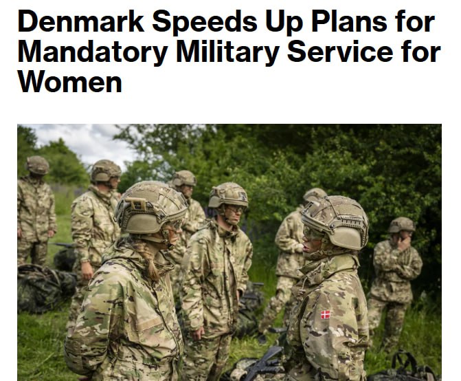 🇩🇰Дания с 2026 года начнет призывать женщин в армию