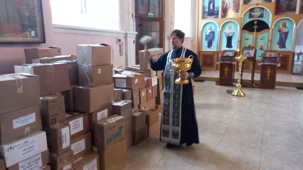 Перед отправкой груза протоиерей Михаил Жемчугов совершил молебен на начало доброго дела.