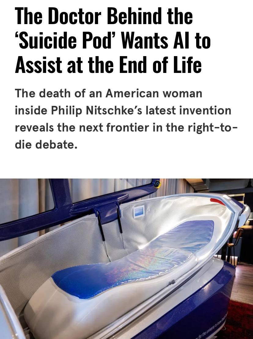 Швейцарский стартап, разработавший «капсулу смерти», решил переложить ответственность за эвтаназию на искусственный интеллект. После того как первый случай использования устройства привел к уголовному преследованию врача за содействие самоубийству, создатели нашли простой выход — передать контроль нейросети.