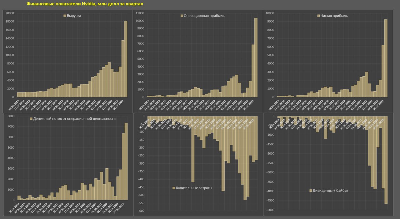 • Операционная прибыль – $180 млн в 2014-2015, за последние 12 месяцев – $5.1 млрд, в 3кв23 – $10.3 млрд, рост в 57 раз.