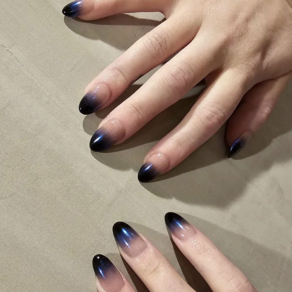 Чтобы повторить дизайн, можно выбрать любой оттенок лака: от неонового до черного, а сверху нанести втирку с помощью плоской кисти. В конце покрыть глянцевым финишем. Инфлюенсеры предлагают экспериментировать с маникюром: прикрепить объемные фигуры, добавить стразы, сделать френч или градиент.