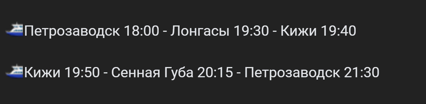 В связи с этим, с 12 июня возобновляются рейсы из Петрозаводска в Сенную Губу по воде. Кометы будут ходить три раза в неделю: по средам, пятницам и воскресеньям.