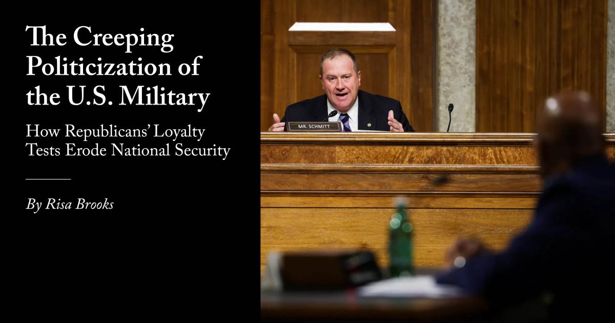 Вооружённые силы США "могут превратиться из беспартийной силы, которой они являются сегодня, в союзника одной из фракций Республиканской партии", — переживает Риса Брукс, профессор политологии Университета Маркетт.