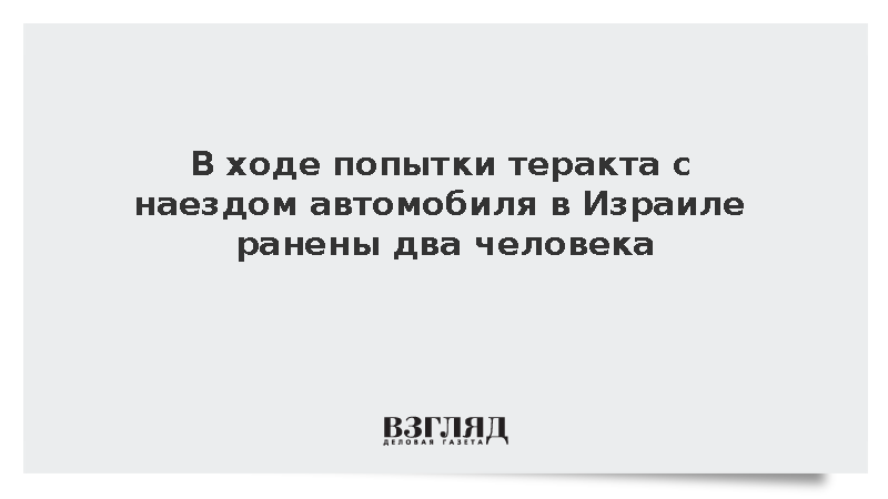 Двое человек получили ранения в результате попытки теракта с наездом автомобиля к юго-востоку от Тель-Авива, нападавший обезврежен, сообщила в воскресенье пресс-служба полиции Израиля.