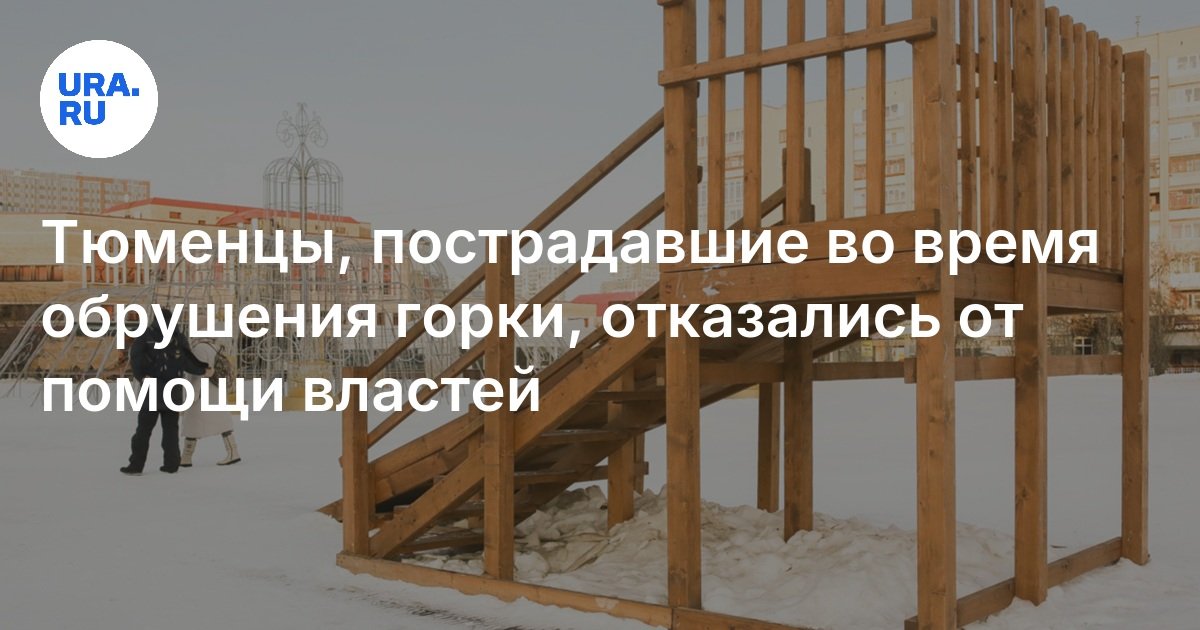 Жители Тюмени, которые пострадали во время обрушения горки на площади 400-летия, отказались от помощи властей. По информации городской администрации, до инцидента горка прошла освидетельствование и была признана работоспособной. Горку устанавливали за счет внебюджетных средств.
