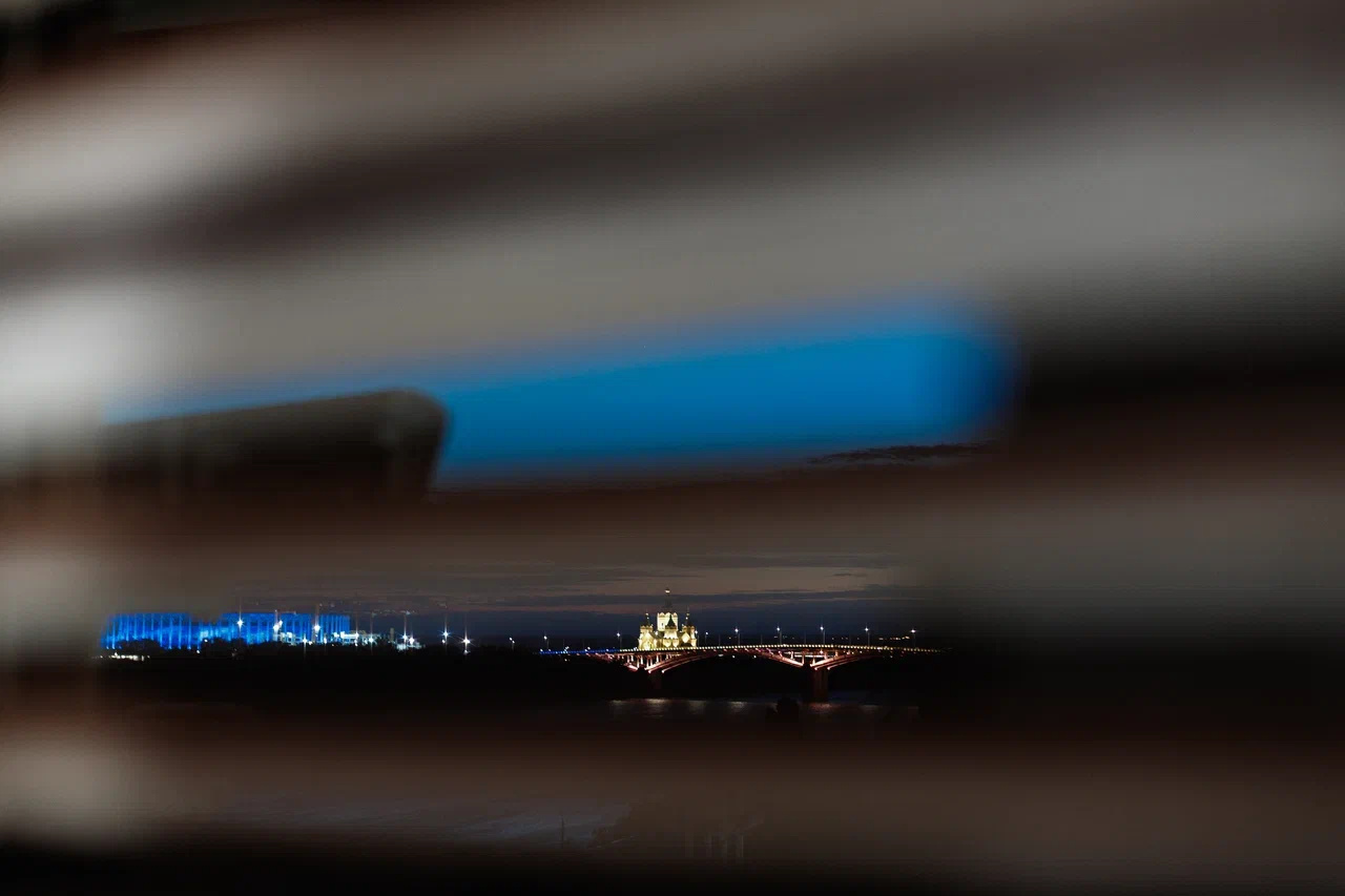 Спустя полчаса неспешным шагом мы добираемся до самой красивой точки на маршруте — метромоста. Оттуда через застекленные окна открывается вид на собор Александра Невского, улицу Черниговскую и Оку. До места мы добрались, когда уже начало светать, — сквозь вентиляционную решетку открывался невероятный вид на просыпающийся город.
