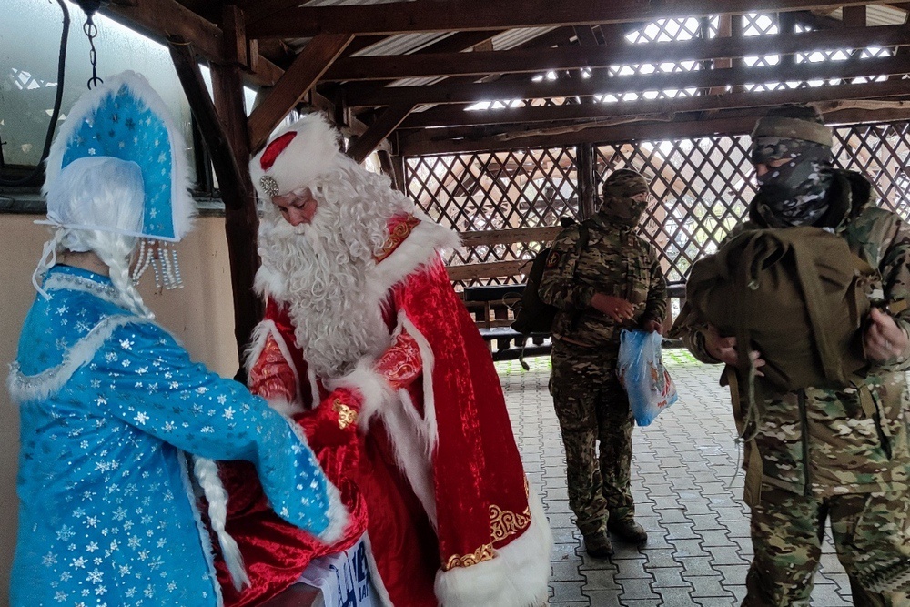 Все подарки привезли не просто так, а вместе с Дедом Морозом и Снегурочкой. Устроили для бойцов настоящий маленький спектакль и подняли всем настроение.