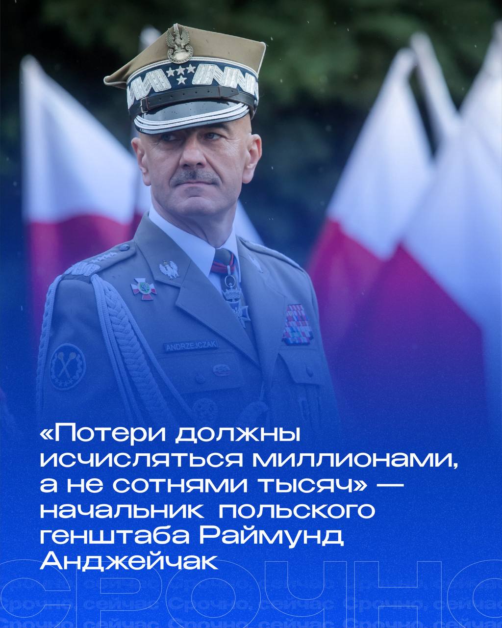 Начальник польского генштаба заявил, что потери ВСУ следует исчислять миллионами, а не сотнями тысяч. Также он считает, что смена главкома ВСУ не решила стратегических проблем Украины☝🏻