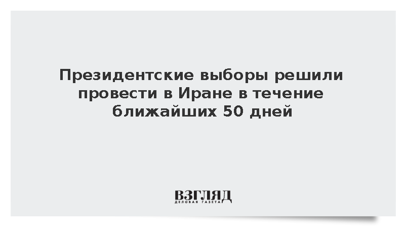 Как приводит его слова иранское агентство Eghtesad Оnline, по закону, президентские выборы должны пройти в ближайшие 50 дней, после чего новый президент представит парламенту новый кабмин для одобрения, передает ТАСС.