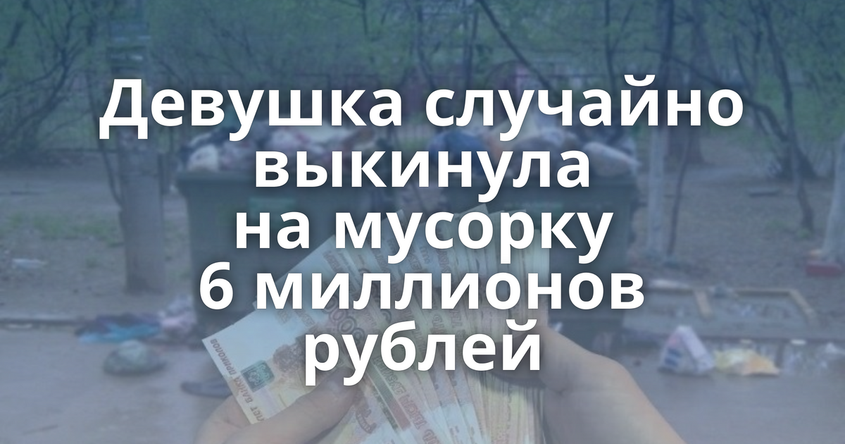 В небольшом городке Амурской области девушка случайно выбросила на мусорку 6 миллионов рублей, доставшихся ей по наследству. В начале июля она потеряла отца и после похорон устроила в его доме капитальную уборку, выбросив на свалку много ненужного хлама.Она знала, что отец копит деньги на дом в Московской области, чтобы переехать поближе к ней, но найти их нигде не могла. Вскоре в Завитинске, где многие друг друга знают (в городе около 10 тысяч жителей), поползли слухи, что соседи девушки Наталья Б. и Эдуард К. нашли крупную сумму денег. Она отправилась к ним, чтобы поговорить и попробовать вернуть миллионы. Но соседи на контакт не пошли, отрицая находку. Наследнице ничего не оставалось кроме как обратиться в полицию.