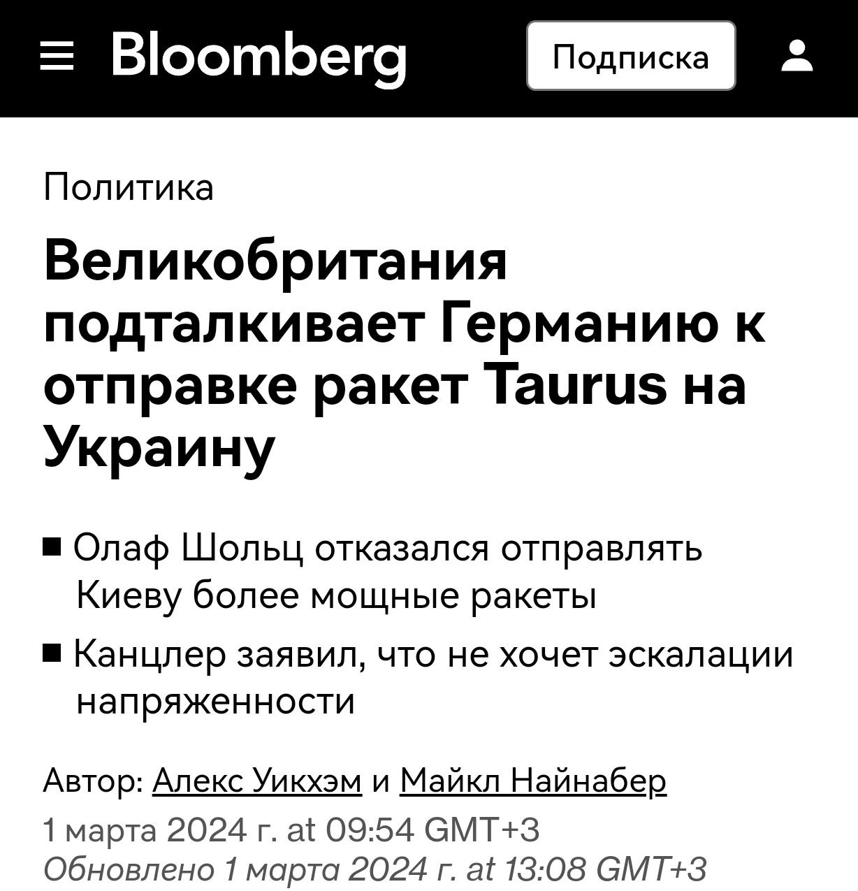 Великобритания "подталкивает" Шольца к отправке ракет Taurus на Украину.