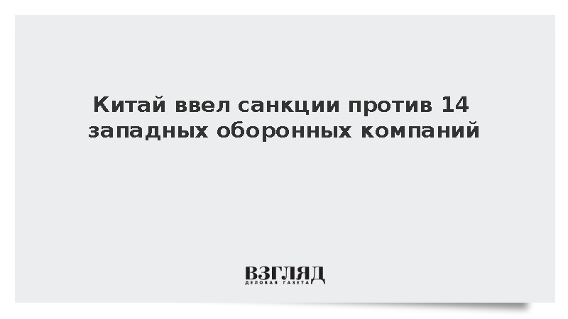 Китайские власти внесли 14 оборонных компаний из США и других западных стран в список неблагонадежных организаций, передает ТАСС.