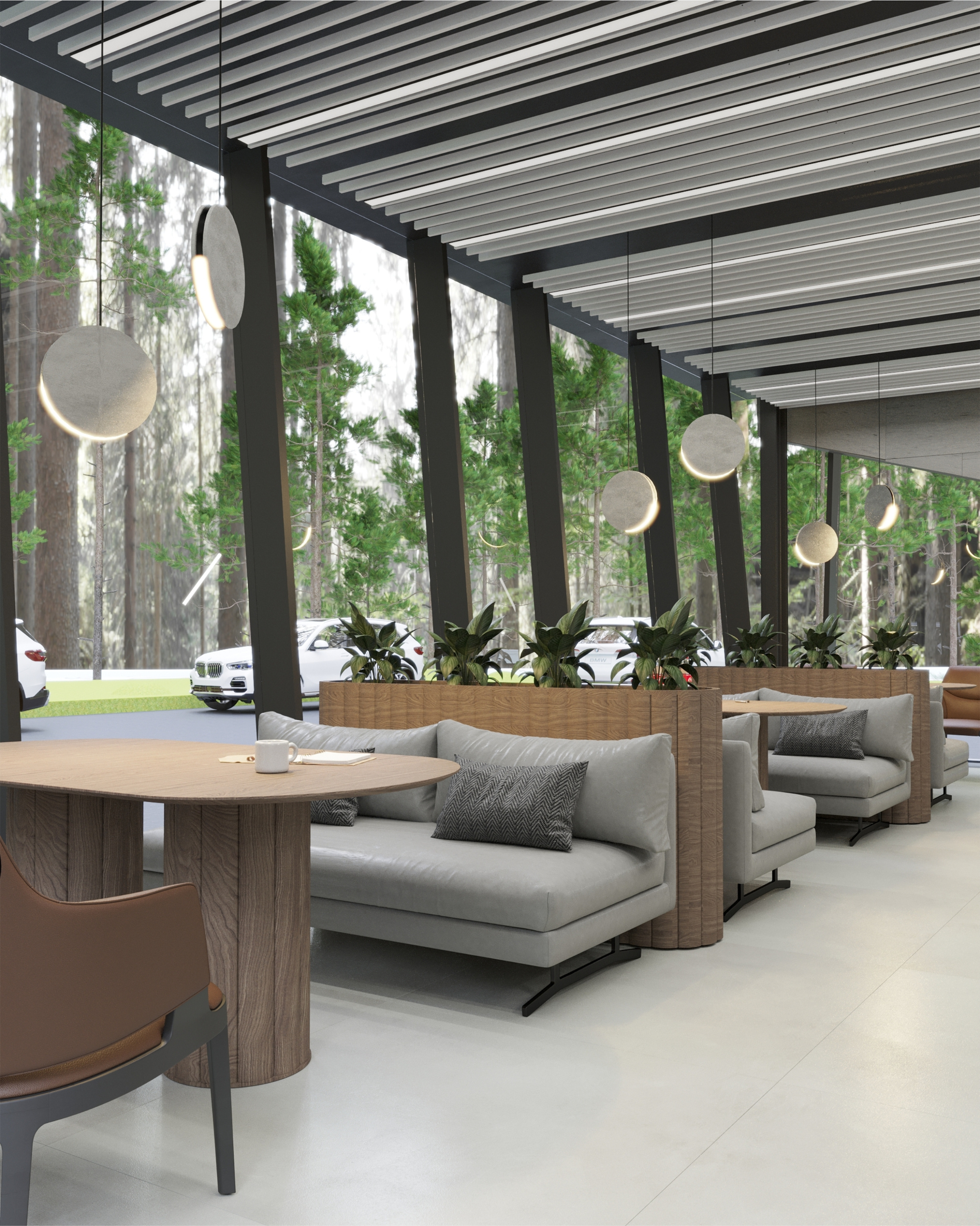 Рядом уже работает Autolab by RCC, которую открыл Тимофей Алтушкин. Это детейлинг-центр, автомойка с административным зданием и ресторан NEONI с террасами на крыше. По соседству теперь появится и заправка от РМК, где будут продавать дизельное топливо, 92-й, 95-й и 100-й бензин.