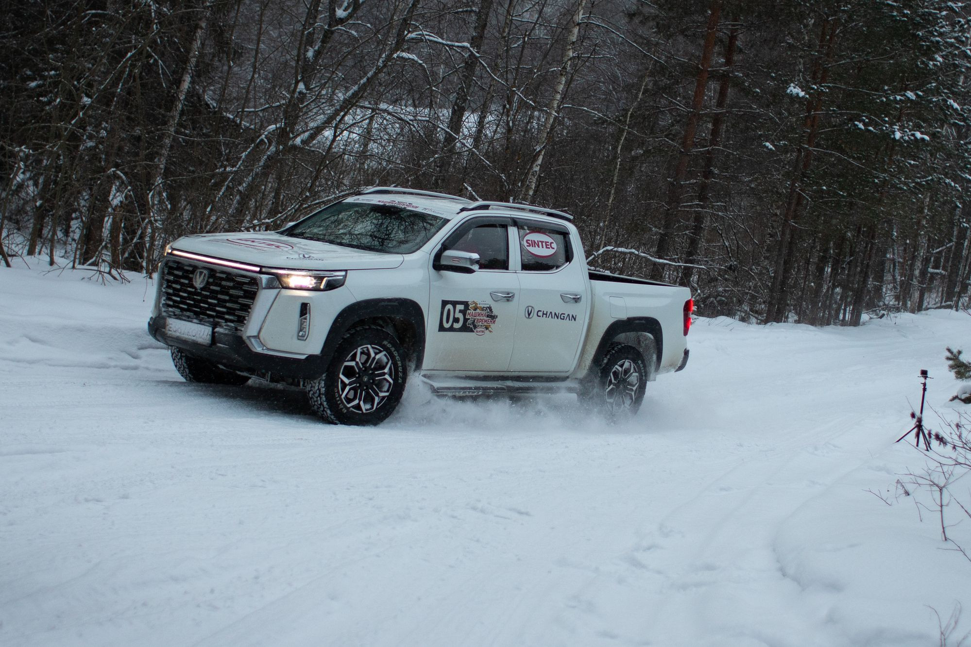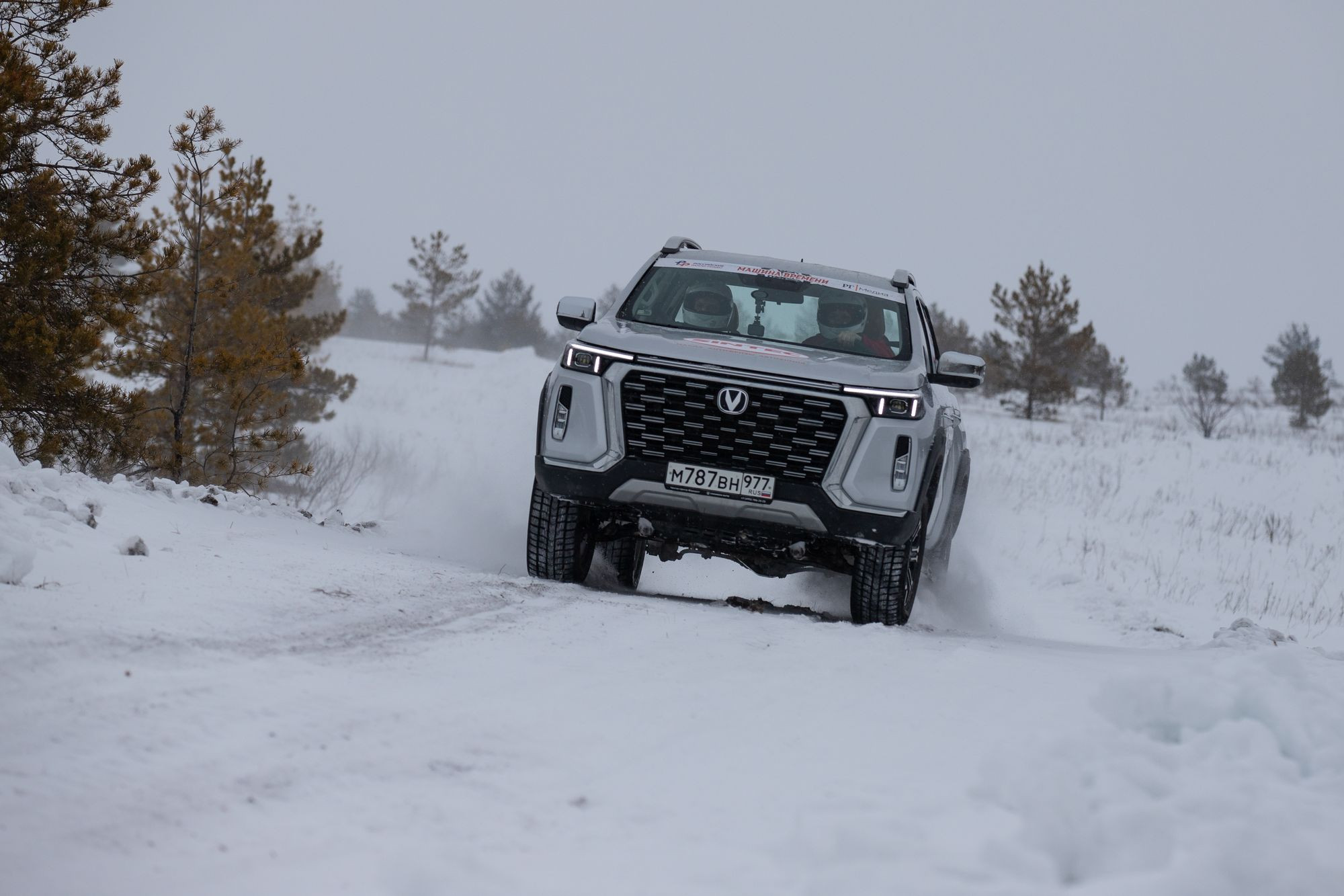 Учитывая, что накануне шёл дождь, а в день самой гонки ударил небольшой мороз и валил снег, машины наши обуты в «липучку», а системы стабилизации, само собой, были отключенными (они сильно душат двигатель), ездить было непросто. Тем более что ограничение максимальной скорости мы частенько игнорировали, за что нещадно в итоге получали пенализацию – штрафное время. Не знаю точно, сколько я привёз в итоге «пеналов», но максимальную скорость чаще ограничивал стуком передней подвески на ходе отбоя и нецензурными выкриками своего штурмана. Валить на все бабки на CS95 New – занятие по-своему захватывающее, но чуть более интересно на ралли-рейдовой трассе, на мой взгляд, вёл себя Hunter Plus: задний привод с подключаемым передом, огромные ходы подвесок и отключенная система стабилизации позволяли валить так, что с сосен вдоль трассы падали потерявшие сознание дятлы. Местами даже самому становилось страшно, но веселье на трассе – штука сама по себе диковатая.