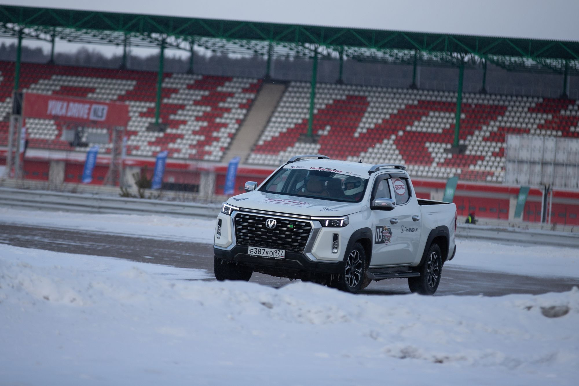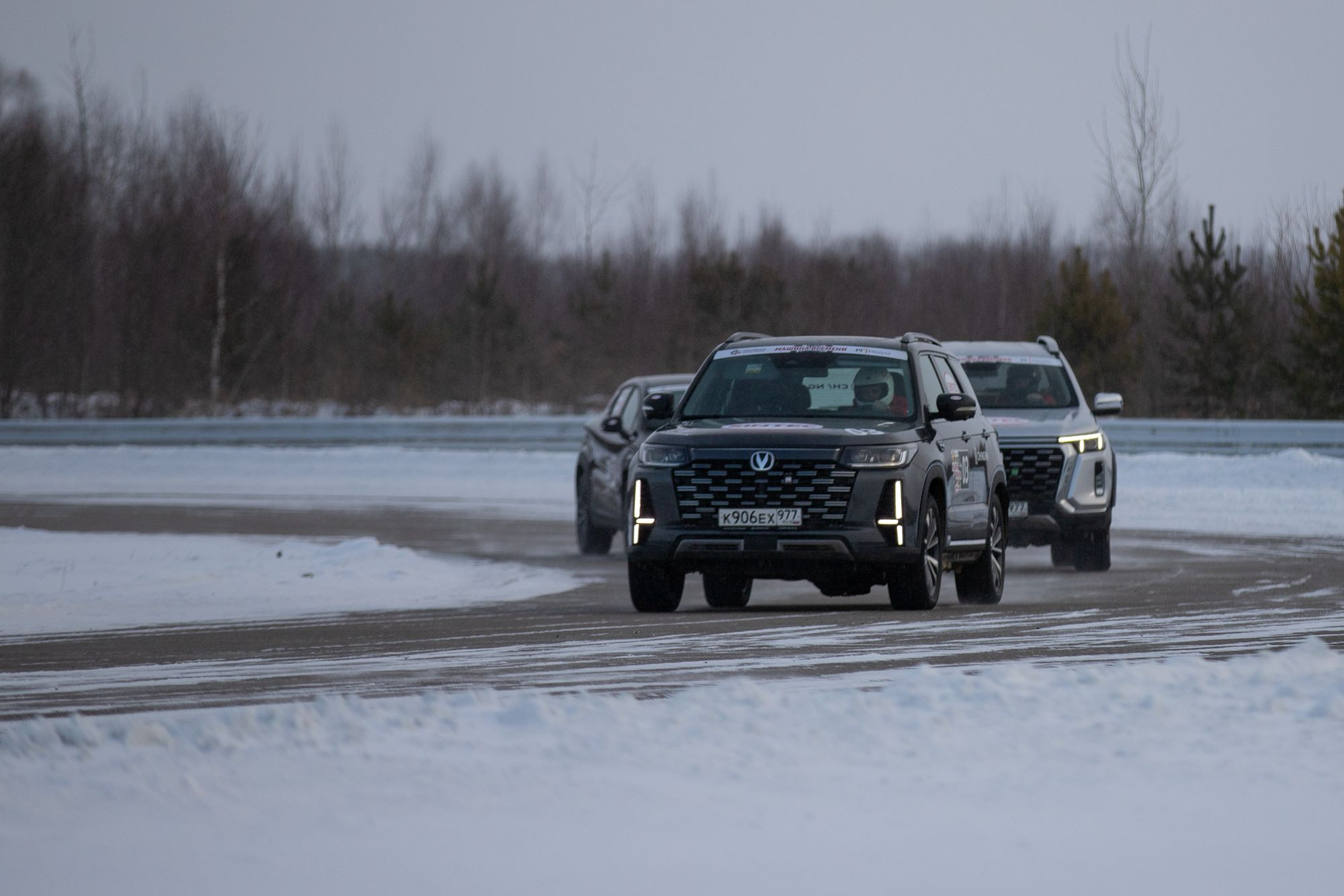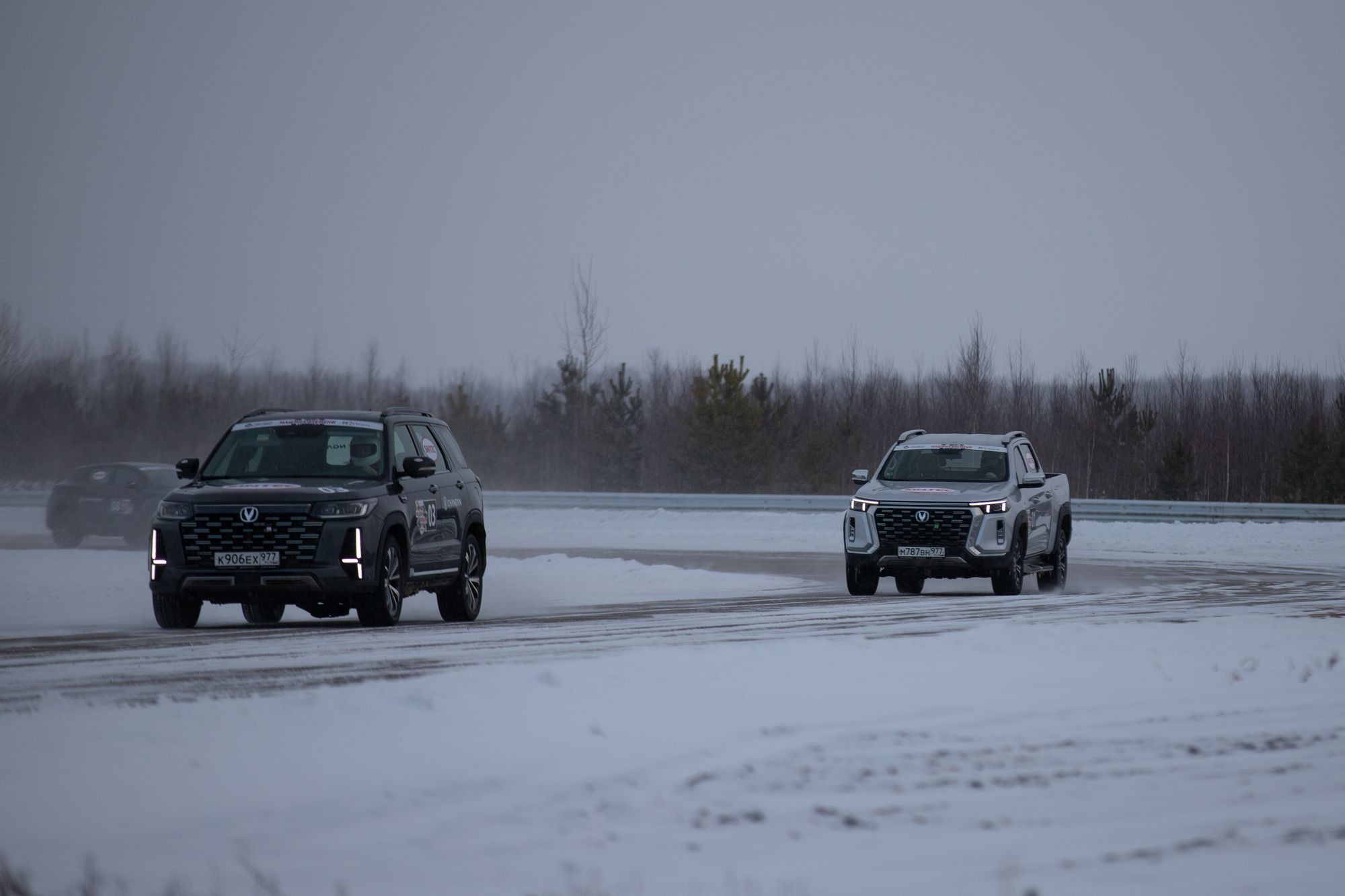 Ещё сильнее она себя показала в заключительный день соревнований – на Нижегородском кольце во время кольцевых гонок. CS95 New вёл себя ровно: рекордов на нём, наверное, не поставишь, но управлять им легко. Пикап в этом плане сложнее, но на нём можно привезти лучшее время. Ну а среди остальных машин на ледовом треке я бы выделил CS75 Plus New: в ралли-рейд мы на нём даже не совались (там нужен полный привод), но на кольце его энерговооружённость стала огромным преимуществом.