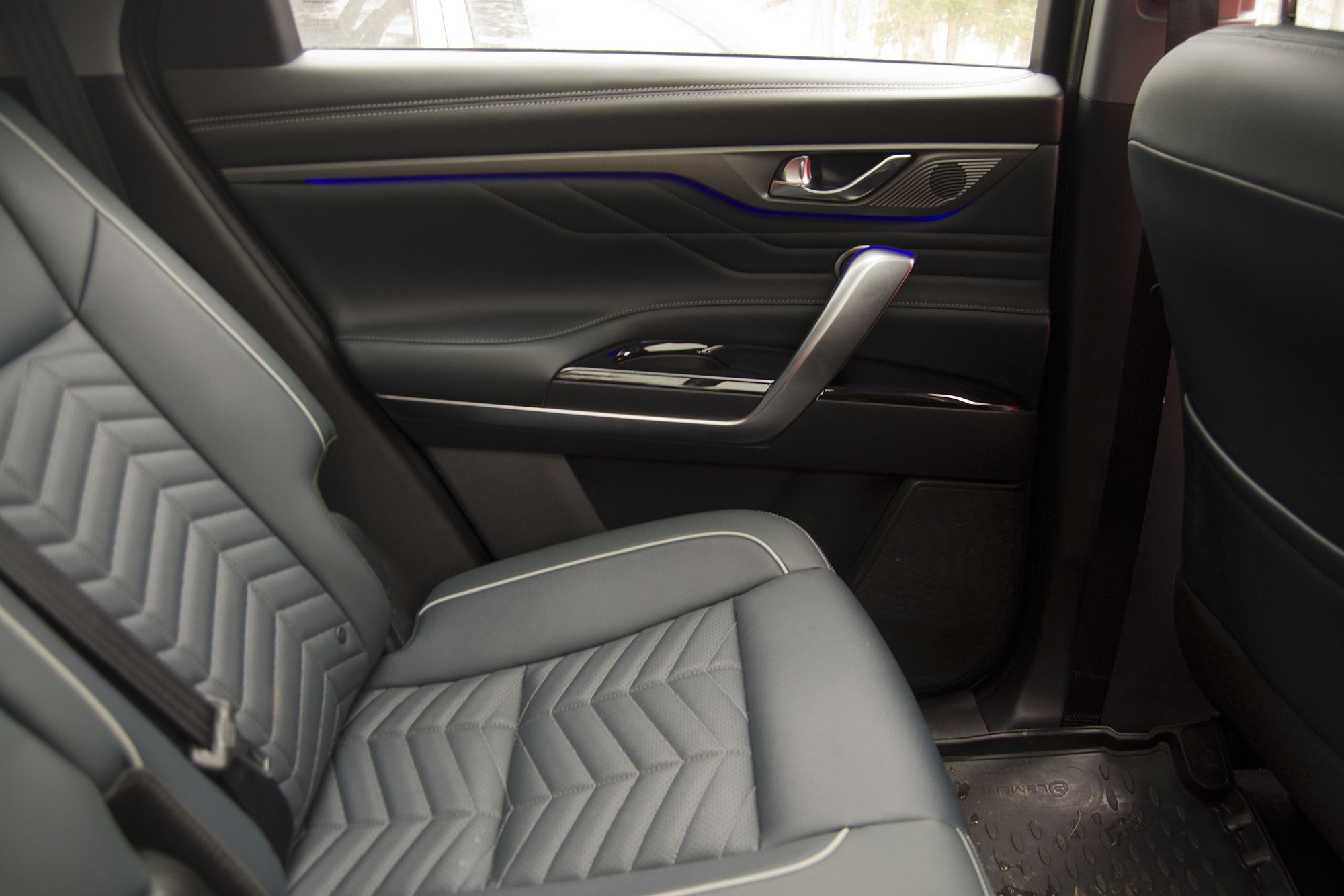 Интерьер хорош и на ощупь, но опять же – а где обогрев сидений? Около джойстика регулировки зеркал на двери есть даже кнопка включения вентиляции, а вот обогрева нет. Летом оно, может, и хорошо, а вот зимой в первую очередь хочется тёплых опций. Впрочем, они могут быть, но в странном сочетании: если нет массажа у водительского кресла – подогрев есть, в том числе и руля. Нет подогревов – есть массаж. А вот вентиляция есть в любой комплектации. Логика загадочная, но ладно – хотя бы какой-то выбор всё-таки присутствует, и при желании можно купить и полностью укомплектованный всеми тёплыми опциями автомобиль. Всем остальным Changan хорошо оснащён по умолчанию, и в CS95 New есть не только панорамная крыша, встроенный регистратор и многое, что уже стало нормой, но и система распознавания знаков, которой не было в прежнем CS95.