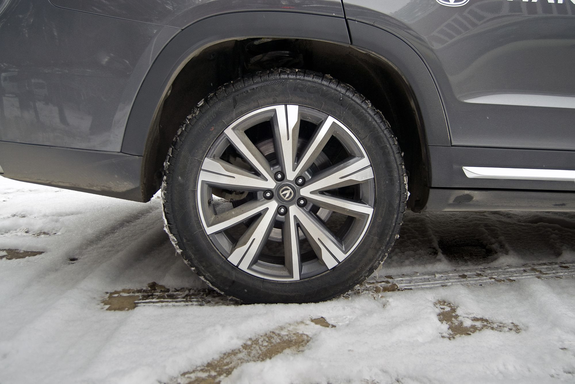 Не заметить CS95 New среди остальных автомобилей сложно – уж больно он выделяется своими габаритами. Кроме него в пробеге приняли участие CS75 Plus New, UNI-T и пикап Hunter Plus. Последний – единственный из всей компании, кто как-то может сравниться размерами с CS95 New. При этом нельзя сказать, что внешне обновлённый кроссовер значительно отличается от обычного CS95 – это всё тот же достаточно гармонично сложенный бегемотик, чем-то напоминающий Ford Explorer. Изменения в экстерьере получись точечными, но удачными. Во-первых, крупному автомобилю к лицу подросшие до 20 дюймов колёсные диски – с ними машина выглядит серьёзнее. Во-вторых, намного современнее стала решётка радиатора, которая очень похожа на решётку пикапа Hunter Plus. Вместе с новым передним бампером и изменённой оптикой она здорово освежила внешность и добавила кроссоверу совершенно точную дозировку монументальности и строгости, так подходящих взрослому пятиметровому автомобилю. Сзади появился новый бампер, и на этом, в общем-то, все внешние изменения заканчиваются. Ну а что изменилось внутри – узнаем в ходе поездки.