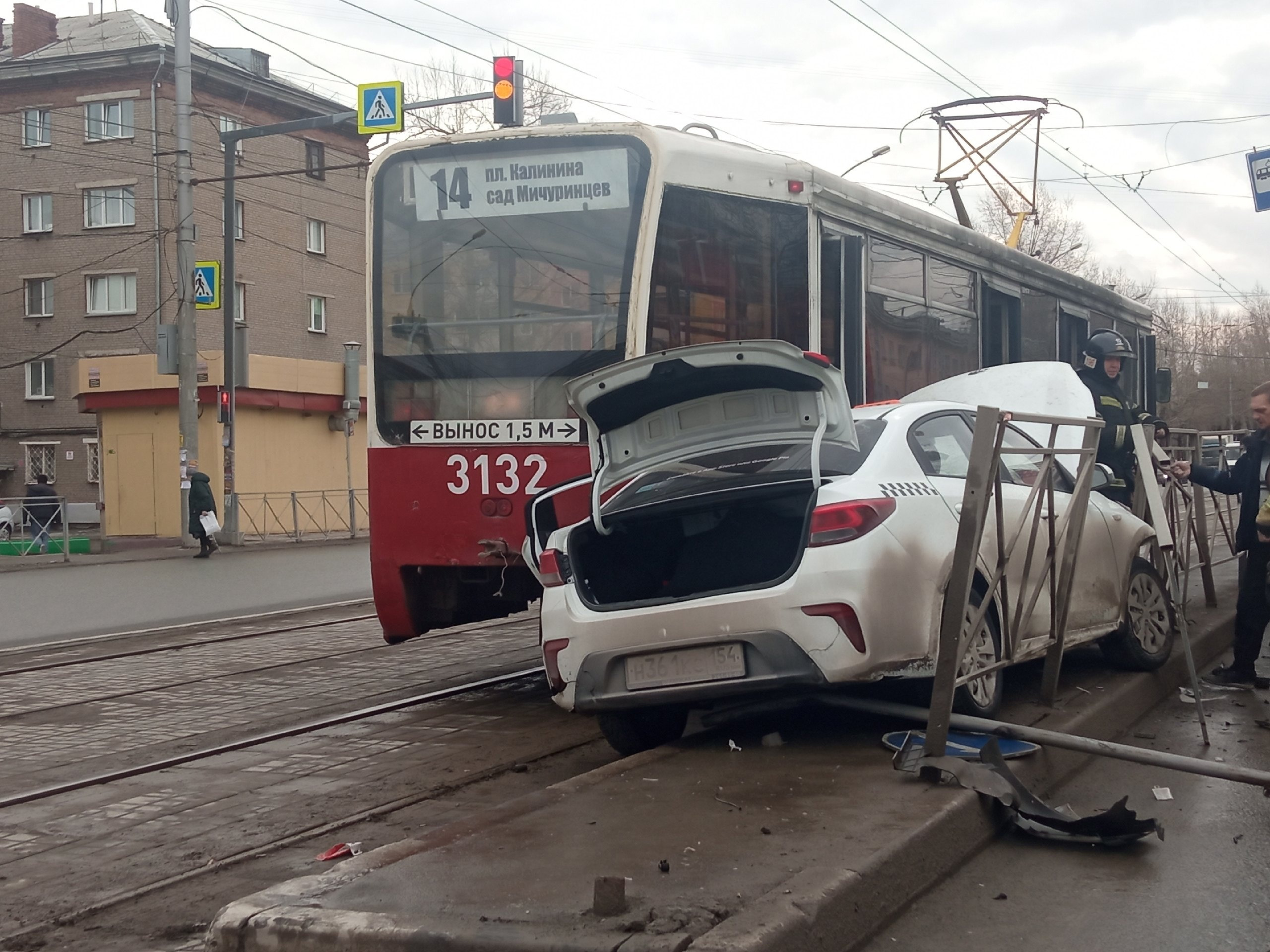 — Водитель седана Kia Rio вылетел с дороги и врезался в стоящий на остановке трамвай, — уверяет автор поста.