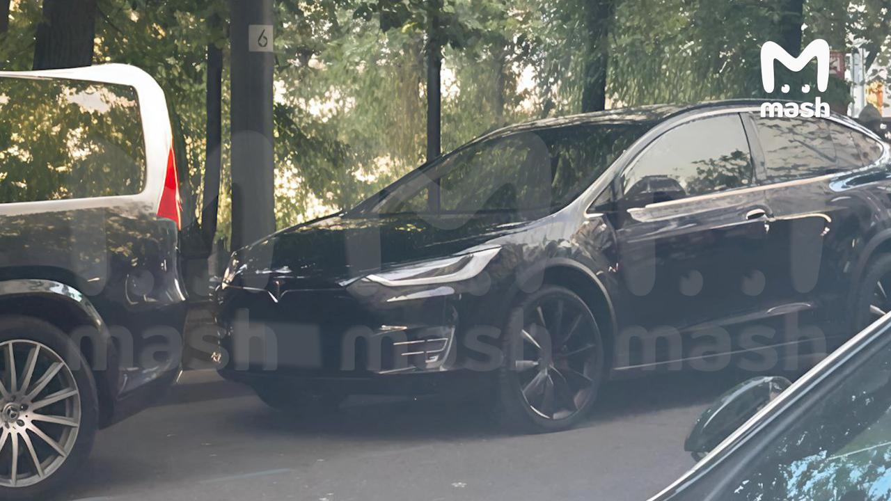 Tesla Model X Романа Старовойта, в которой и было найдено его тело сегодня около 15 часов, в парке им. Малевича у деревни Раздоры в Одинцовском городском округе.