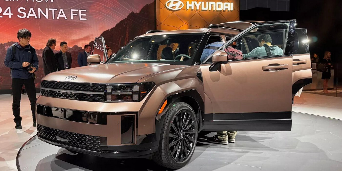 В этот раз автосалон в Лос-Анджелесе стал своеобразным бенефисом концерна Hyundai Motor, показавшего целую россыпь новых и обновленных моделей под марками Hyundai, Kia и Genesis. Во-первых, это пятое поколение кроссовера Hyundai Santa Fe, который внешне изменился кардинальным образом. Теперь это брутальный и угловатый SUV с увеличенной на 4,6 см длиной (4,83 м) и на 5 см — колесной базой (2,81 м). Внутри, следуя последней моде, Santa Fe обрел новую переднюю панель со сдвоенным и изогнутым панорамным экраном виртуальных приборов и мультимедиасистемы.