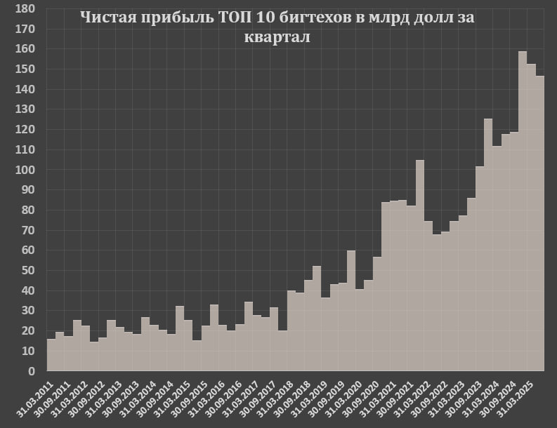 В ТОП 10 бигтехов входят: Nvidia, Microsoft, Apple, Amazon, Google, Meta, Broadcom, Tesla, Oracle, Netflix.