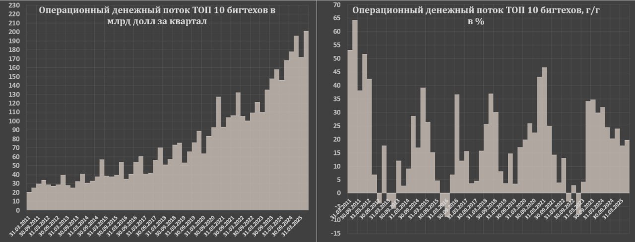Операционный денежный поток в 2кв25 составил 201.4 млрд (+19.7% г/г, +49% и +100%), за 12м – 747 млрд (+20.5% г/г, +56.6% и +67.7% соответственно).