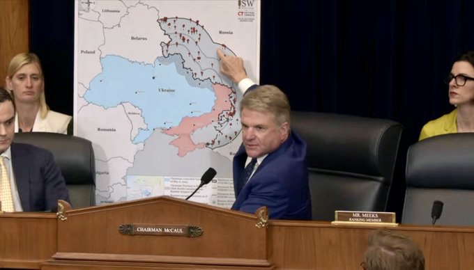 Карту накануне показал глава иностранного комитета палаты представителей Майкл Маккол, который призвал отменить запрет для Киева об ударах американским оружием по России.