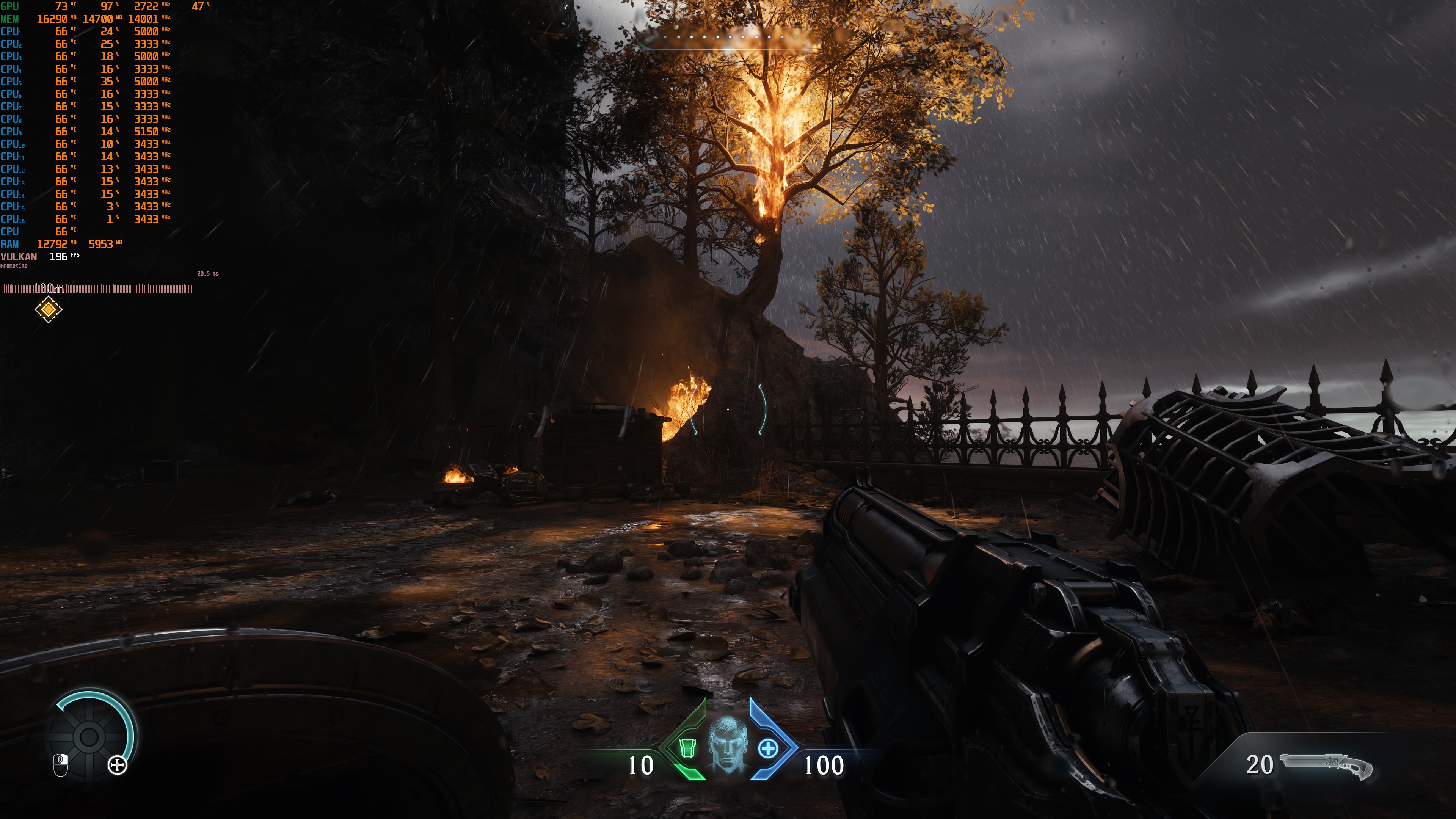 При нативном 4К-разрешении DOOM: The Dark Ages становится неиграбельной с Path Tracing. RTX 5090 не может обеспечить 30 FPS. Это не должно вызывать удивления. В конце концов, мы говорим о Path Tracing в современной ААА-игре. В режиме DLSS 4 Quality Mode мы смогли достичь 50 кадров в секунду. Однако мы и близко не подобрались к плавным 60 кадрам. К счастью, в режиме DLSS 4 Performance всегда можно видеть больше 60 FPS.