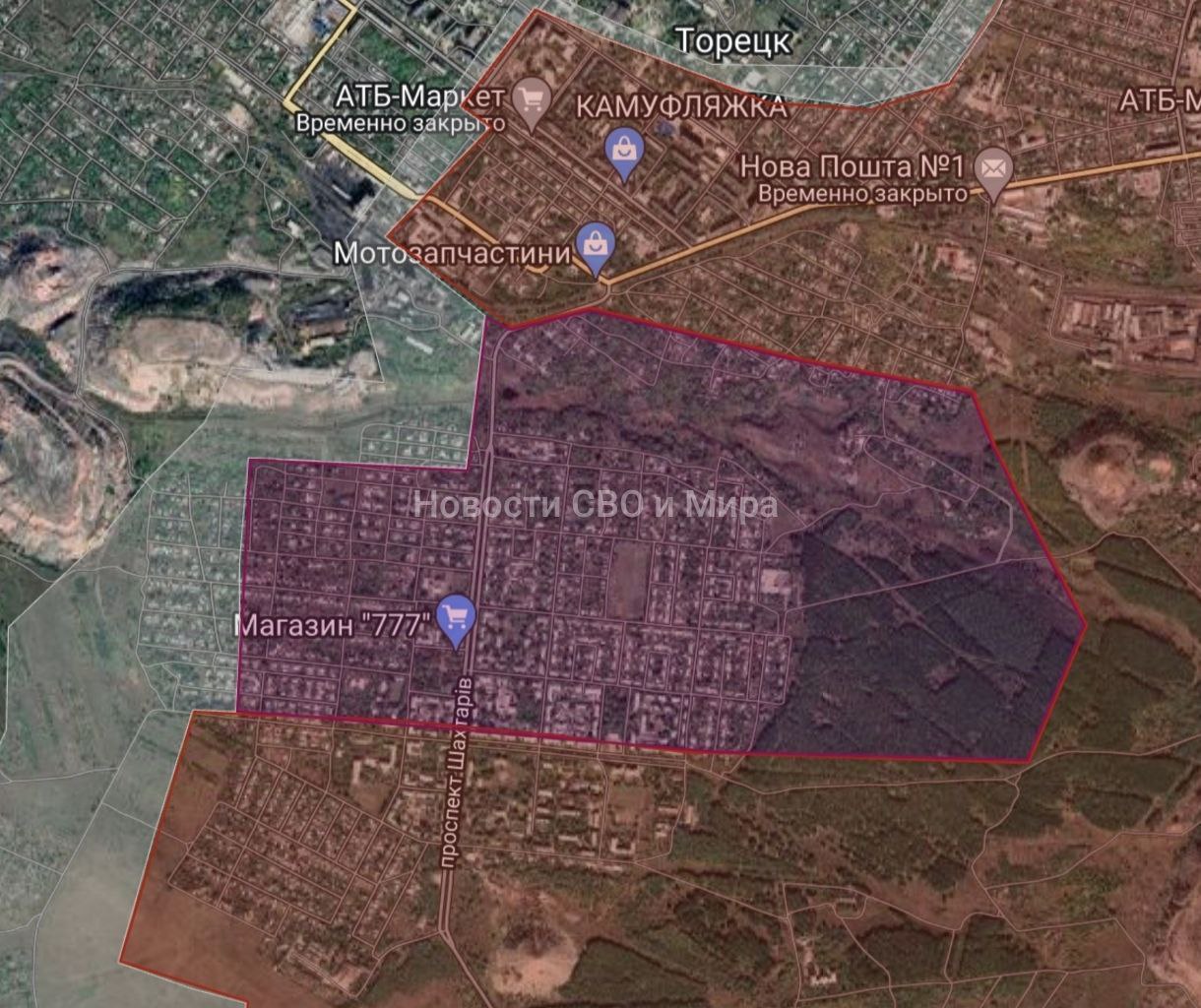 В Дзержинске к ночи продолжает мощный накат наших штурмовиков, противник с боями откатывается. Иллюстрация причин нарастающего нытья со стороны ВСУ о плохих тенденциях в Дзержинске.
