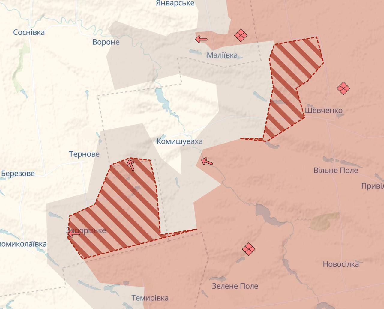 Отрицавшие вчера выход ВС РФ к нп. Камышеваха осинты укранцев, сегодня вдруг решили закрасить до Тернового и Вороново, а так же почти убрать ВСУ из Малиновки.