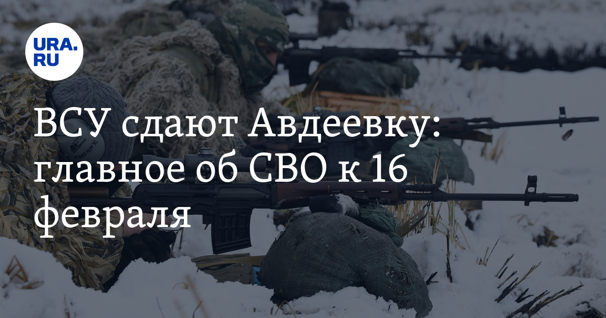 Украинская армия официально подтвердила отступление на юге Авдеевки. URA.RU приводит главные новости о спецоперации к вечеру 16 февраля.