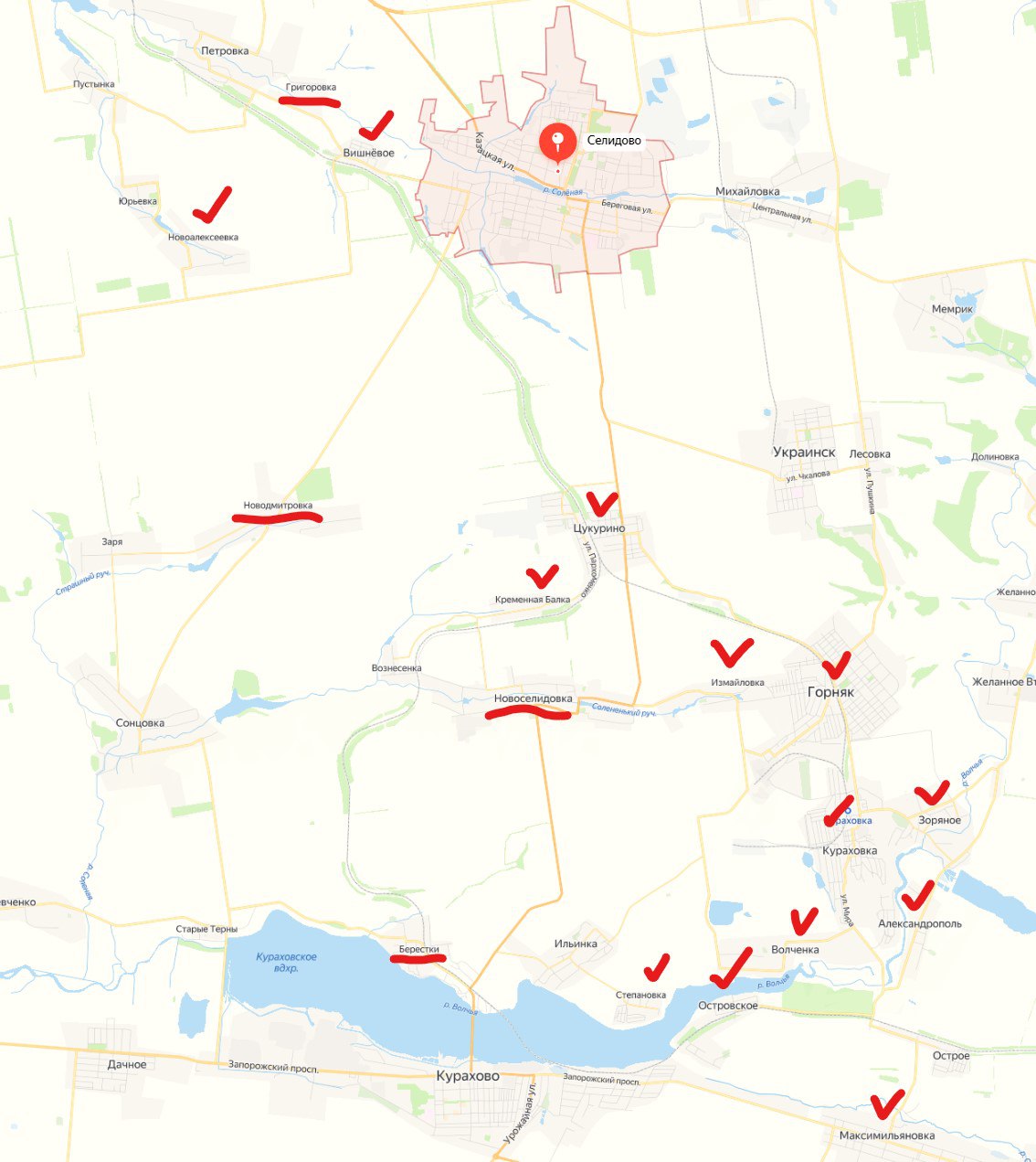 Также продолжаются бои за Новоселидовку и Новодмитровку. Наши войска стремятся прорвать оборону противника, чтобы обойти Кураховское водохранилище с запада и перерезать трассу на Курахово.