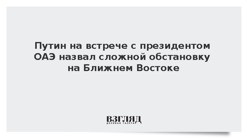 Президент России Владимир Путин на встрече с президентом ОАЭ Мухаммедом бен Заидом Аль Нахайяном назвал обстановку на Ближнем Востоке очень сложной.