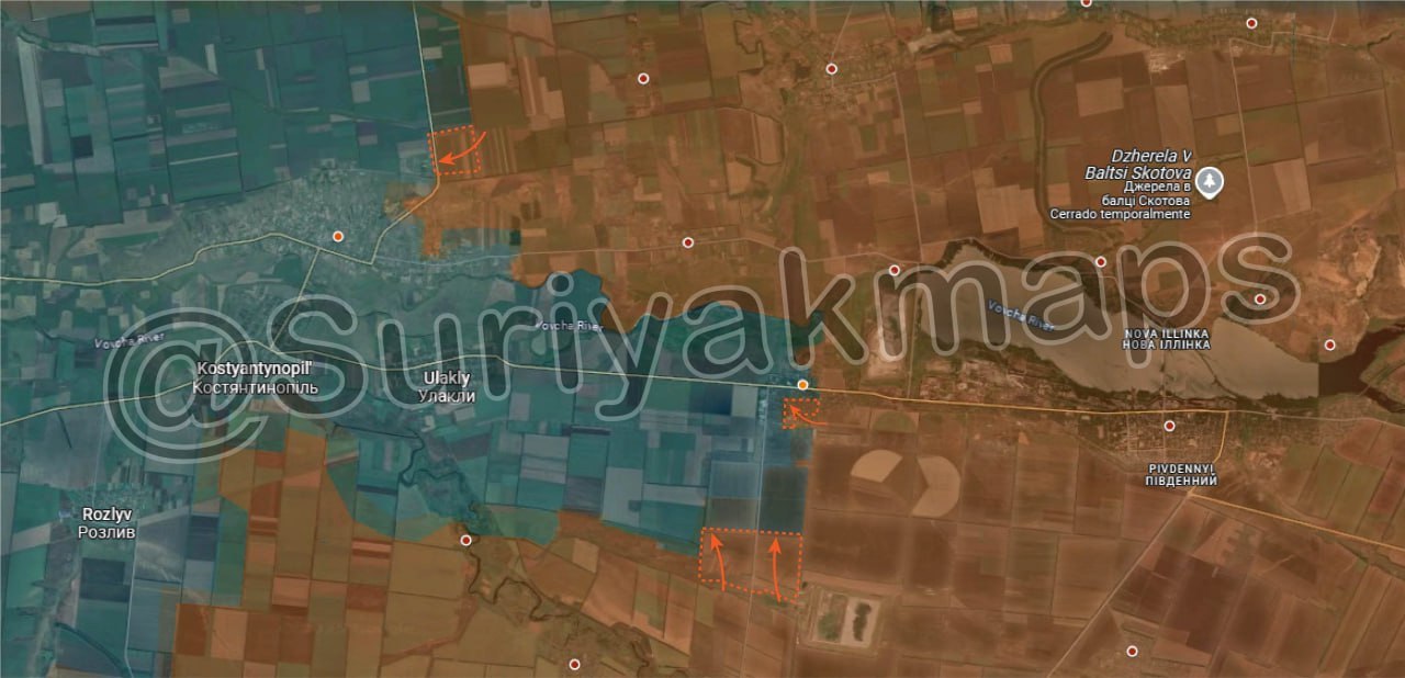 5. Ситуация на Великоновоселовском фронте: Российская армия продвинулась западнее Раздольного, взяв под контроль укрепления, прилегающие к дороге.