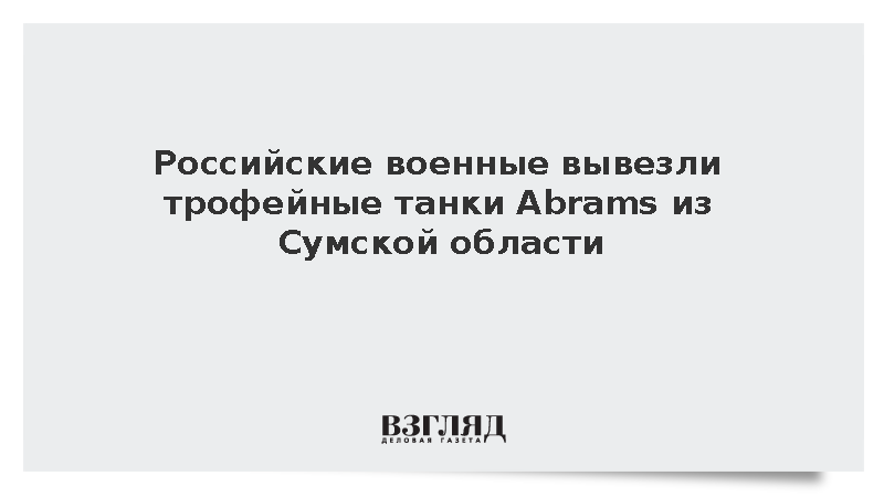В Минобороны сообщили, что два уничтоженных танка Abrams, а также бронетехника западного производства были эвакуированы российскими военнослужащими из Сумской области на Украине в тыл, передает РИА «Новости».