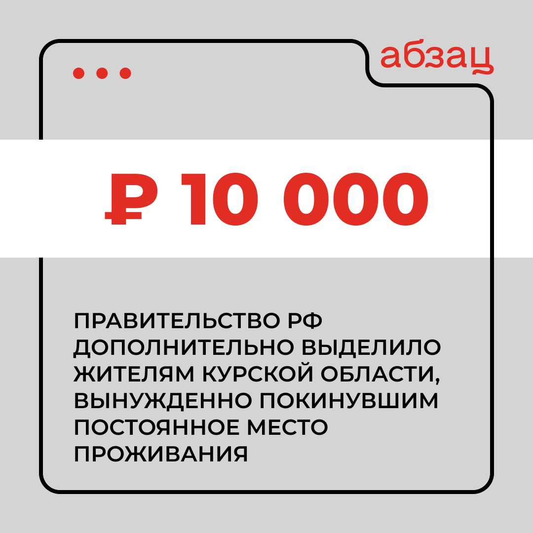 Правительство РФ выделило дополнительные 10 тысяч рублей каждому жителю Курской области, вынужденно покинувшему свой дом