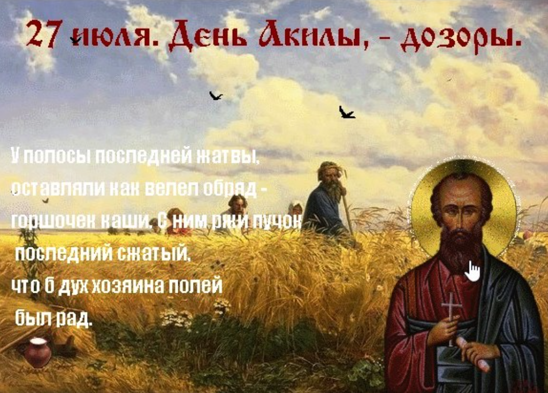 27 июля в народно-христианской традиции отмечают день Акилы Дозоры — особый праздник, наполненный глубоким смыслом, приметами и обрядами. Этот день наши предки считали важной вехой летнего календаря, когда природа словно подсказывает, каким будет завершение сезона. Люди с вниманием следили за погодой, веря, что она предвещает судьбу последних летних дней. В православной традиции 27 июля вспоминают святого апостола Акилу, в честь которого верующие зажигают свечи, вознося молитвы о мире, благополучии и защите.