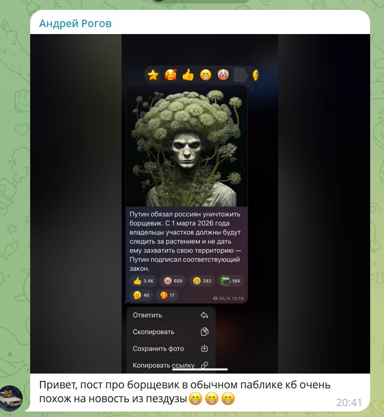 Есть такие люди, которые болт клали на свои участки. Борщевик там разрастается, а потом летит на все соседние участки. А один борщевик может высрать до 100к. семян. Так что инициатива вполне нужная