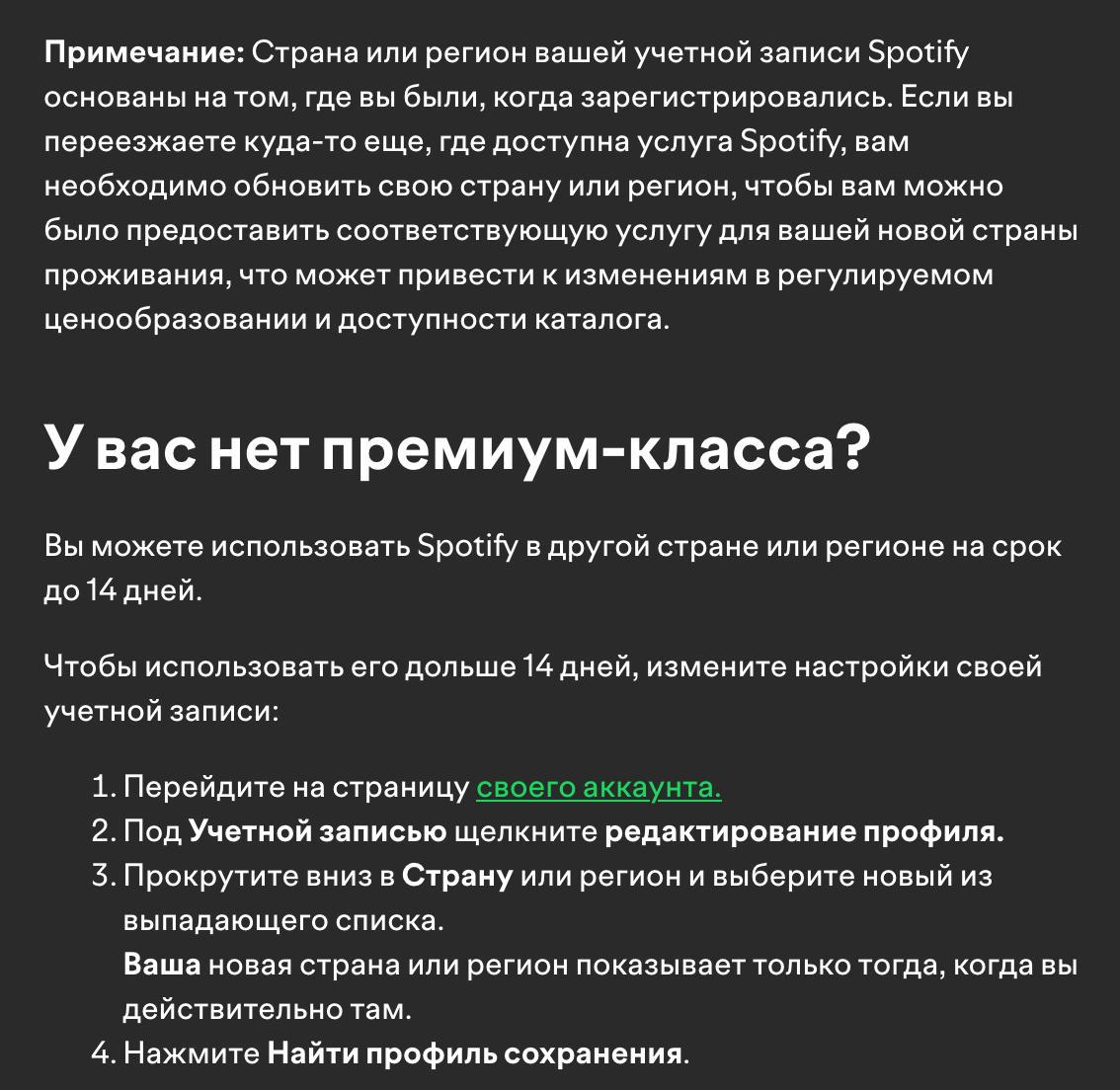 Сервис будет сверять страну, где оформлена подписка, и страну фактического использования. Если они не совпадут — премиум улетит в помойку. Теперь доступна только та версия Spotify, которая работает по месту проживания и по местной цене — а в России сервис официально недоступен.