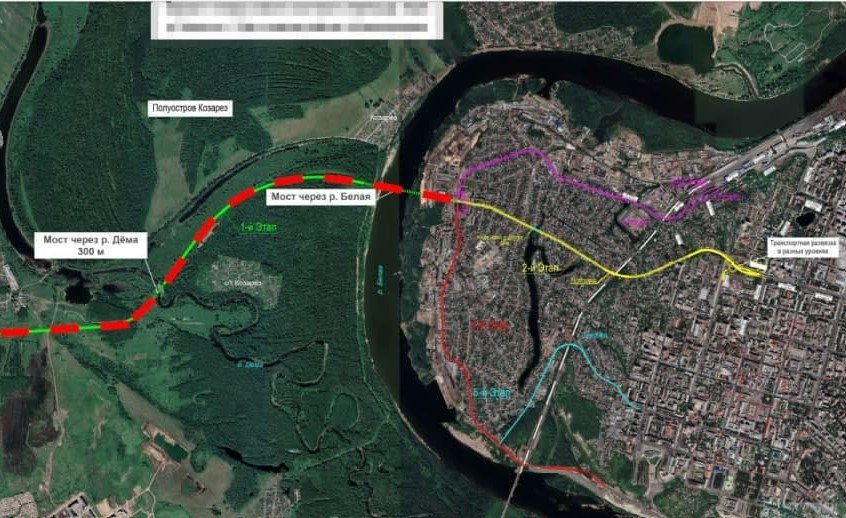 Мост в створе улицы Революционной в Уфе должен стать первым из двух переходов, которые свяжут микрорайон и Дему. По плану, их общая протяженность сооружения должна составить около 9 км, а стоимость — 15 млрд руб. На данный момент компания Dars Development разрабатывает проект. А реализовать его первый этап Радий Хабиров предложил компании «Инфратех Концессии».