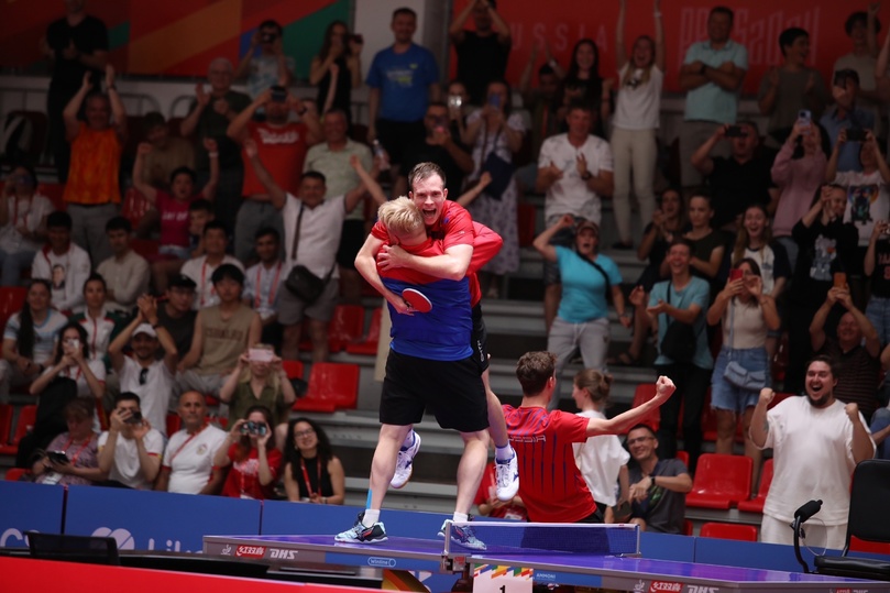 В пятницу, 14 июня, в Казани, состоялся финал у мужских команд по настольному теннису Россия - Китай. Поединок длился более 4-х часов. Российская сборная обыграла соперников со счётом 4:3. Ранее в этом виде спорта женская сборная России также завоевала золото.