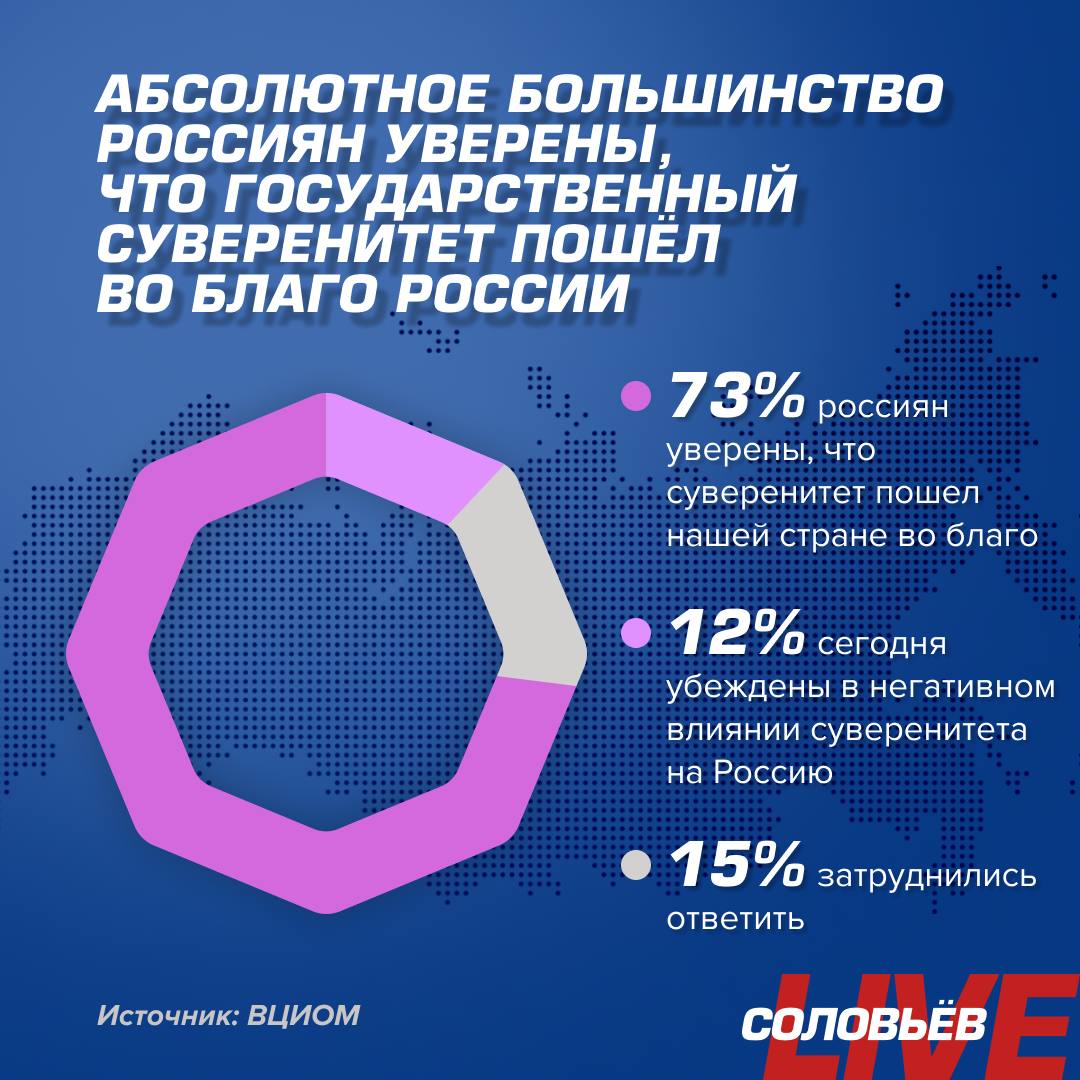 Абсолютное большинство россиян уверены, что государственный суверенитет пошёл во благо России.